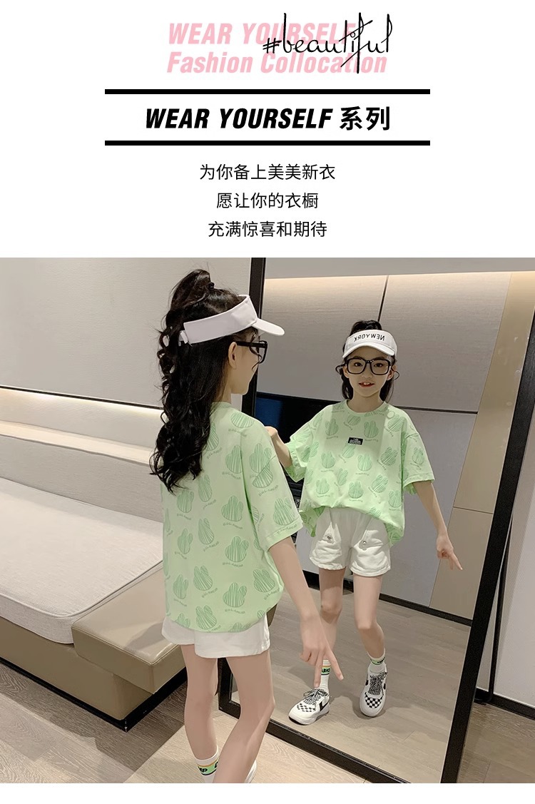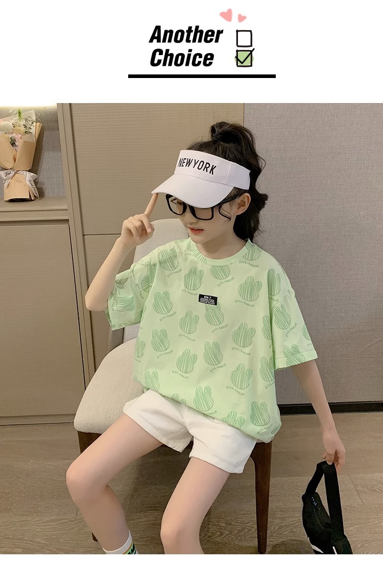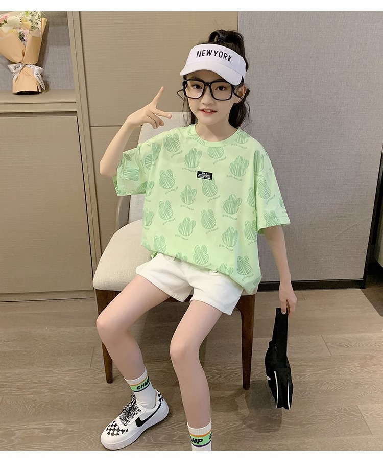 여아 티셔츠 여름 2023 새로운 한국식 아동 반팔 여름옷 여아 반팔 티셔츠 탑 트렌디스토어 가기