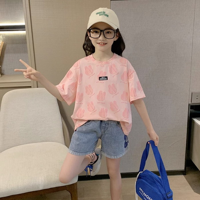 여아 티셔츠 여름 2023 새로운 한국식 아동 반팔 여름옷 여아 반팔 티셔츠 탑 트렌디