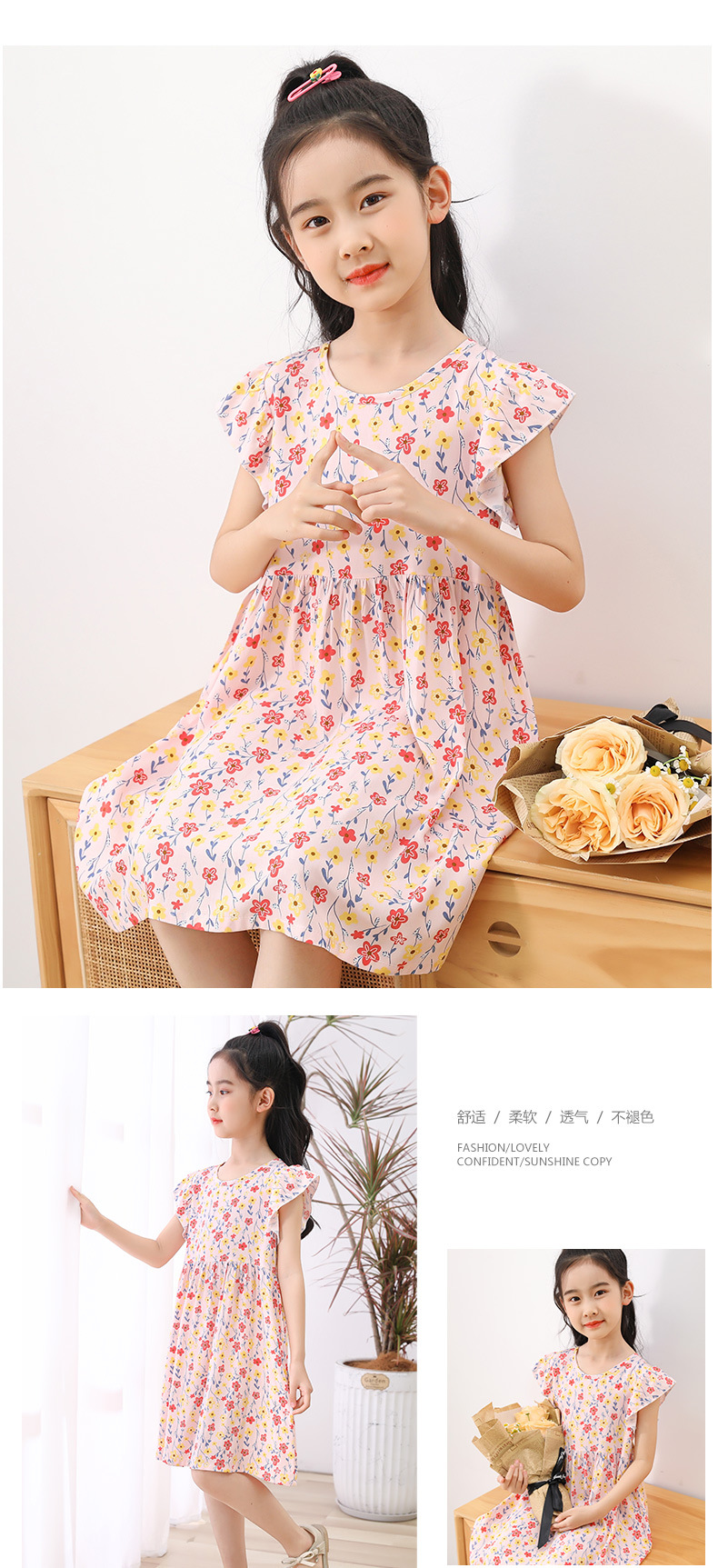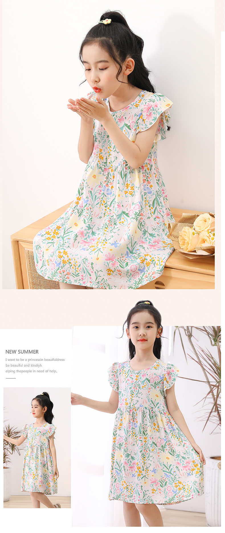 24 여름 소녀 원피스 어린이 한국 공주 원피스 면화 민소매 조끼 치마 어린 소녀 꽃 스커트 도매