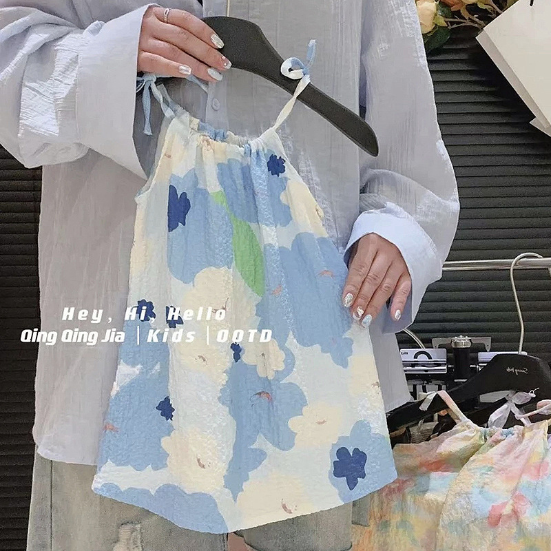 새로운 여자 공주 치마 여름 멜빵 치마 어린이 조끼 치마 큰 아이 원피스 여자의 보물 잠옷 머리카락의 세대