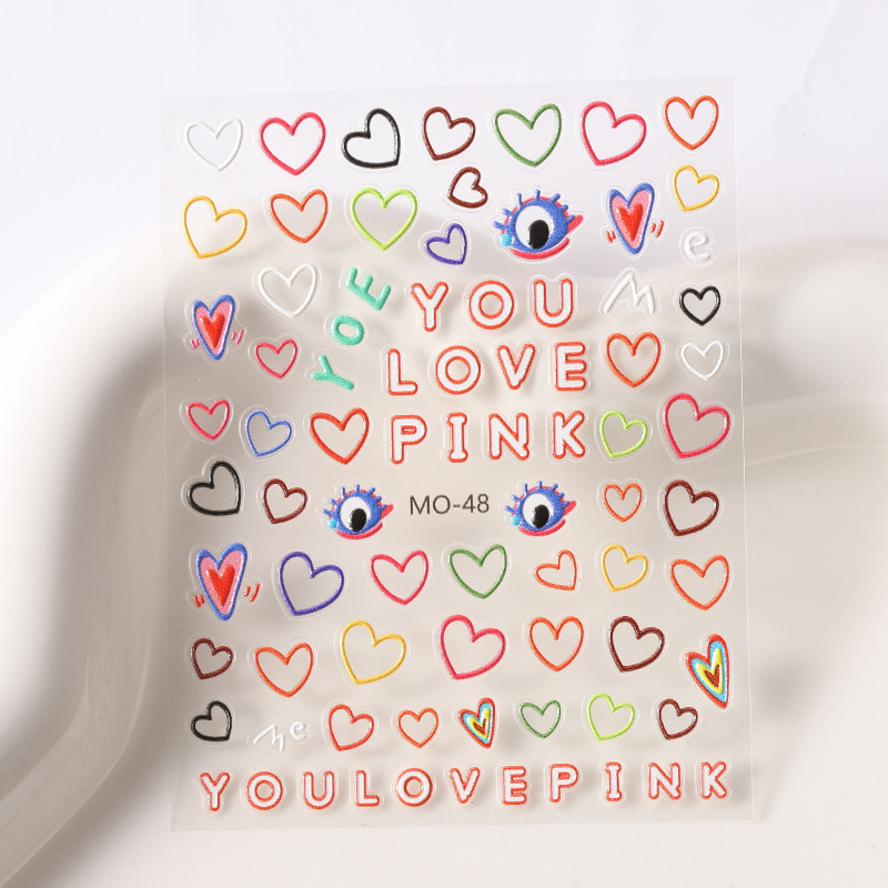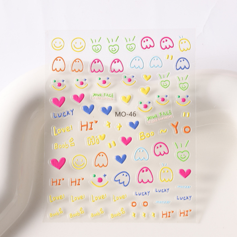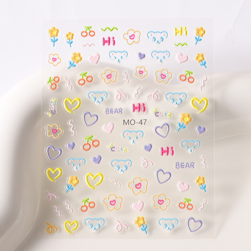 인터넷 연예인 인기있는 릴리프 네일 아트 스티커 라인 낙서 곰 꽃 네일 스티커 얇은 터프 입체 네일 아트 스티커