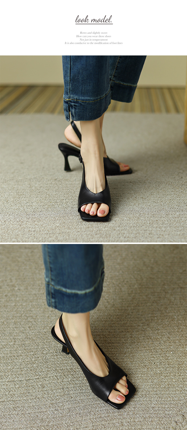 오픈토 여성용 2023 여름 살구색 빈 스틸레토가 달린 화려한 오리지널 자이언트 경량 ~ 가죽 샌들