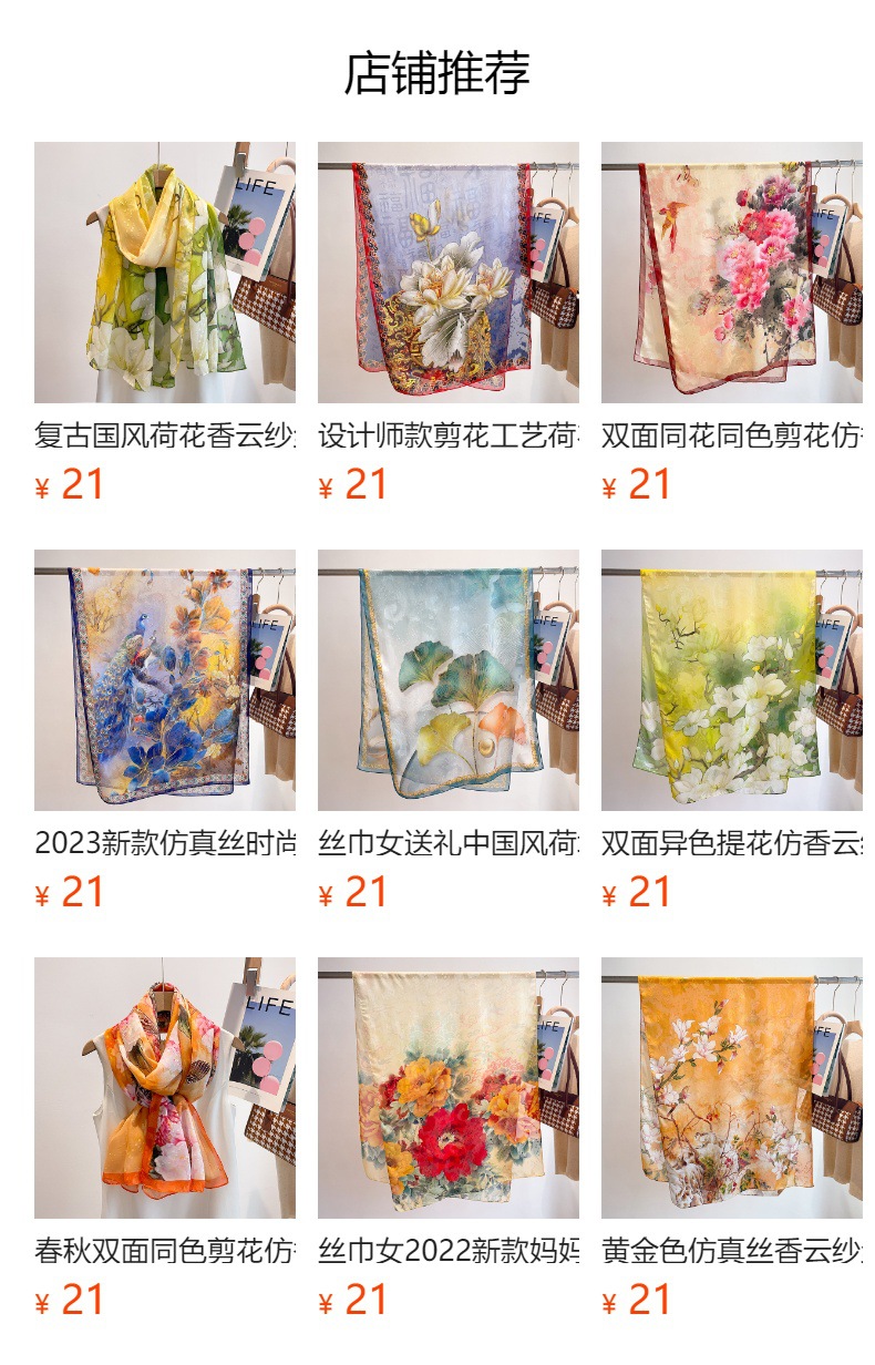 2023 새로운 스타일 인쇄 모조 Xiangyun 원사 긴 스카프 여성의 우아한 우아한 중국 스타일 컷 꽃 숄 실크 스카프 여성용스토어 가기