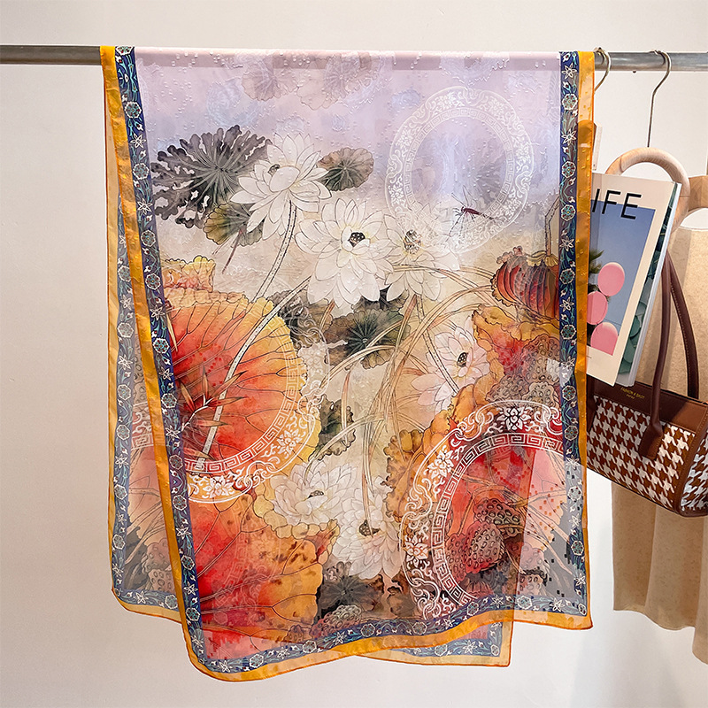 2023 새로운 스타일 인쇄 모조 Xiangyun 원사 긴 스카프 여성의 우아한 우아한 중국 스타일 컷 꽃 숄 실크 스카프 여성용