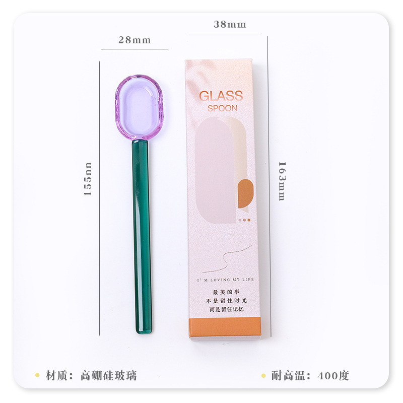 크리 에이 티브 우유 디저트 대조 숟가락 다채로운 투명 고온 저항 유리 귀여운 긴 손잡이 커피 믹싱 스푼 스푼