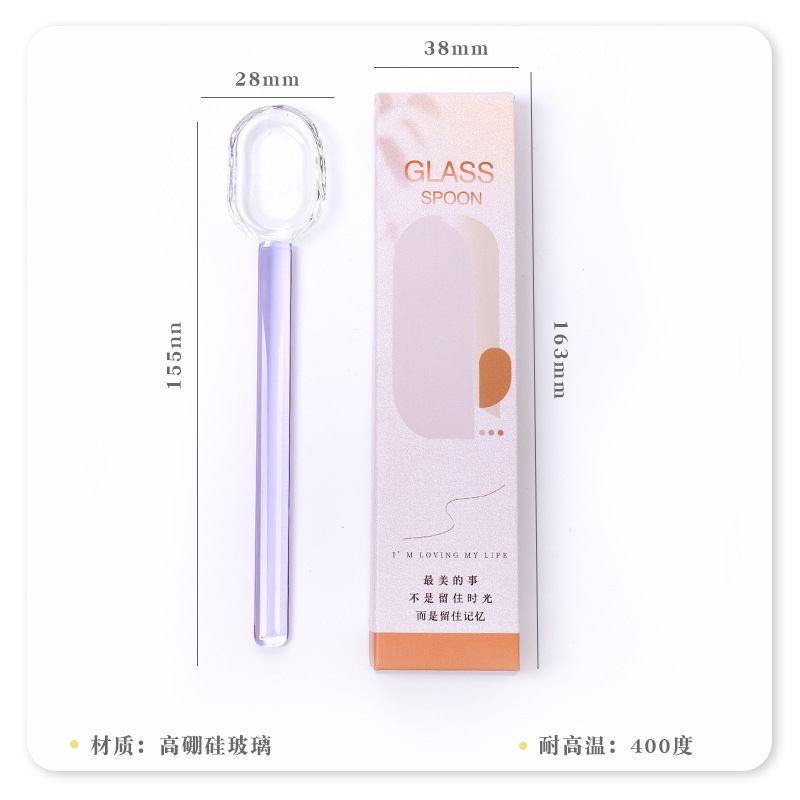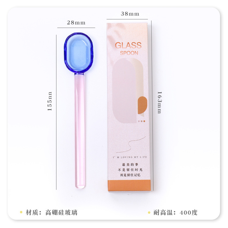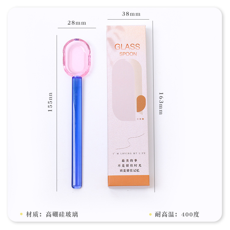 크리 에이 티브 우유 디저트 대조 숟가락 다채로운 투명 고온 저항 유리 귀여운 긴 손잡이 커피 믹싱 스푼 스푼스토어 가기