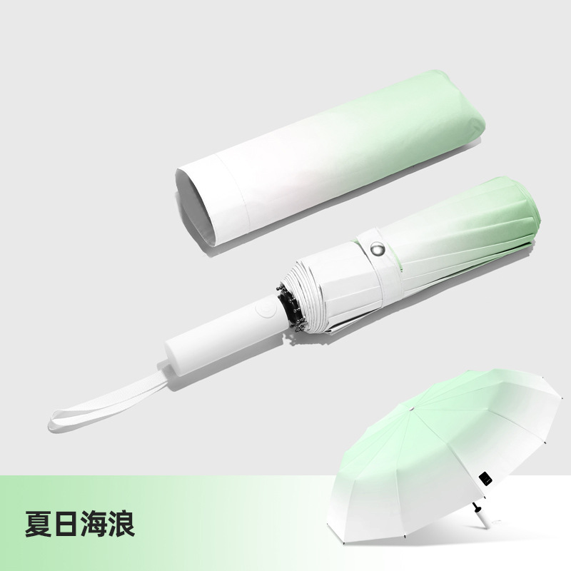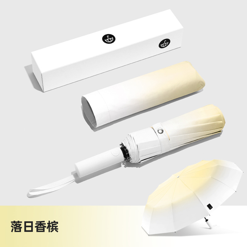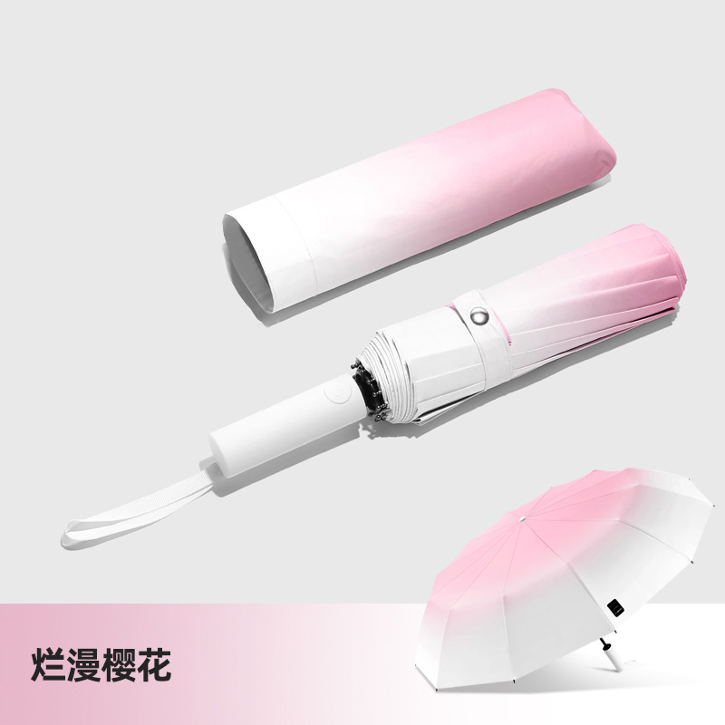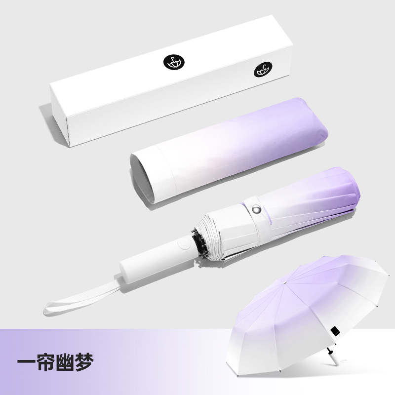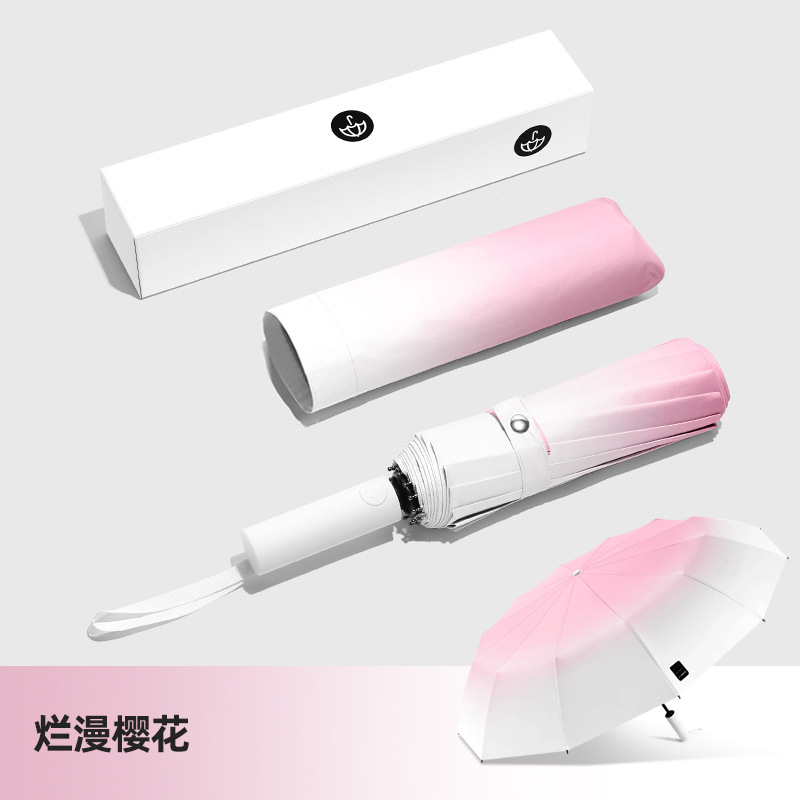 두꺼운 대형 자동 우산 접이식 블랙 글로시 자외선 차단 여성용 양용 우산 도매용