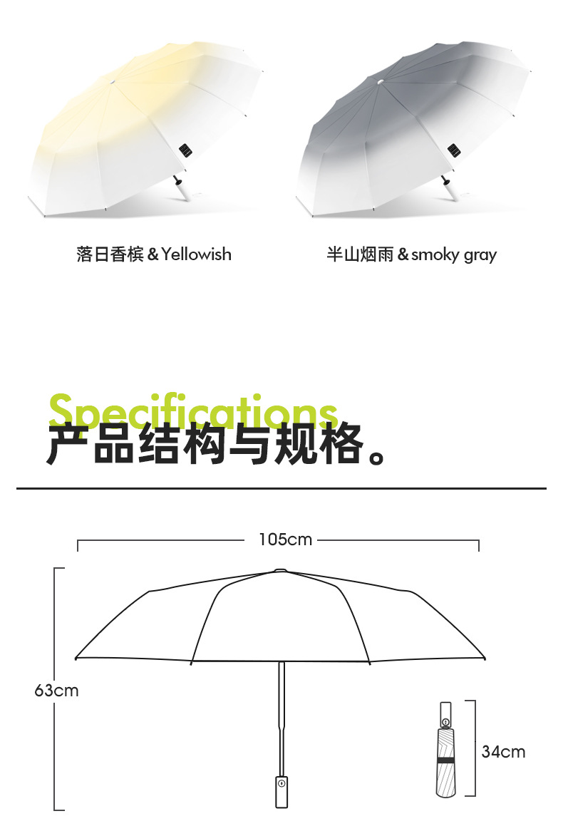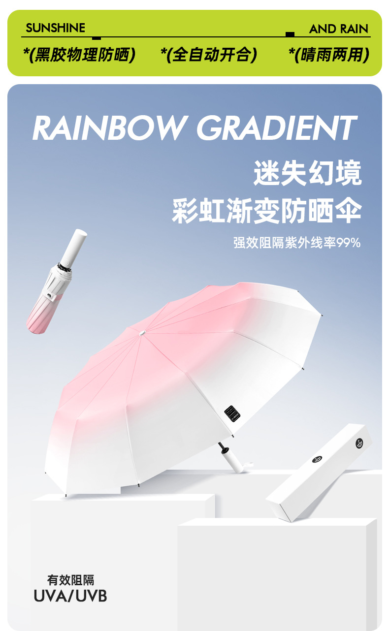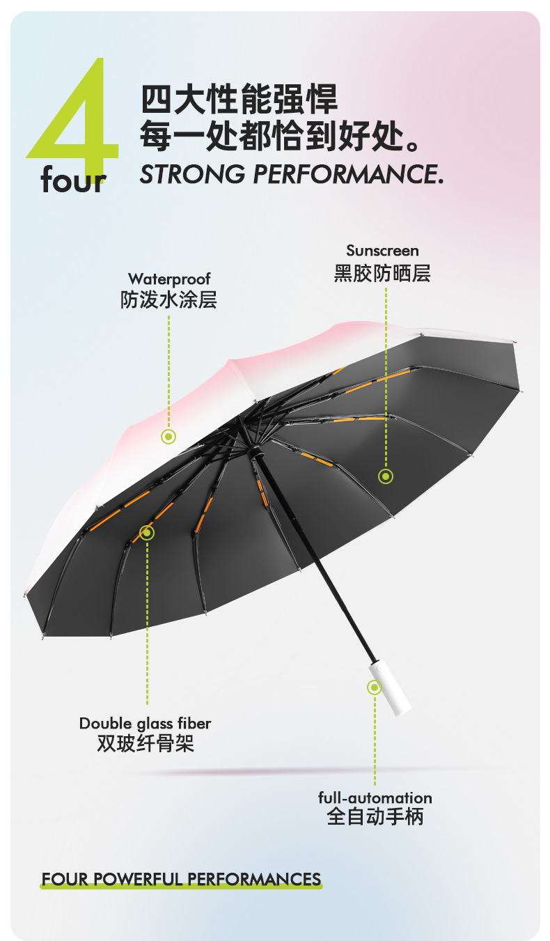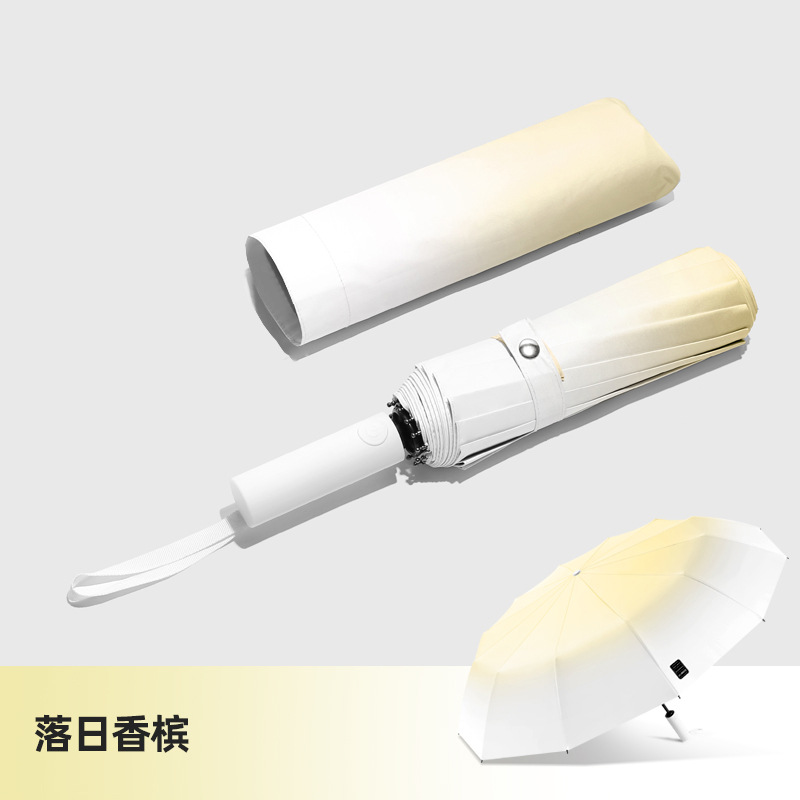 두꺼운 대형 자동 우산 접이식 블랙 글로시 자외선 차단 여성용 양용 우산 도매용