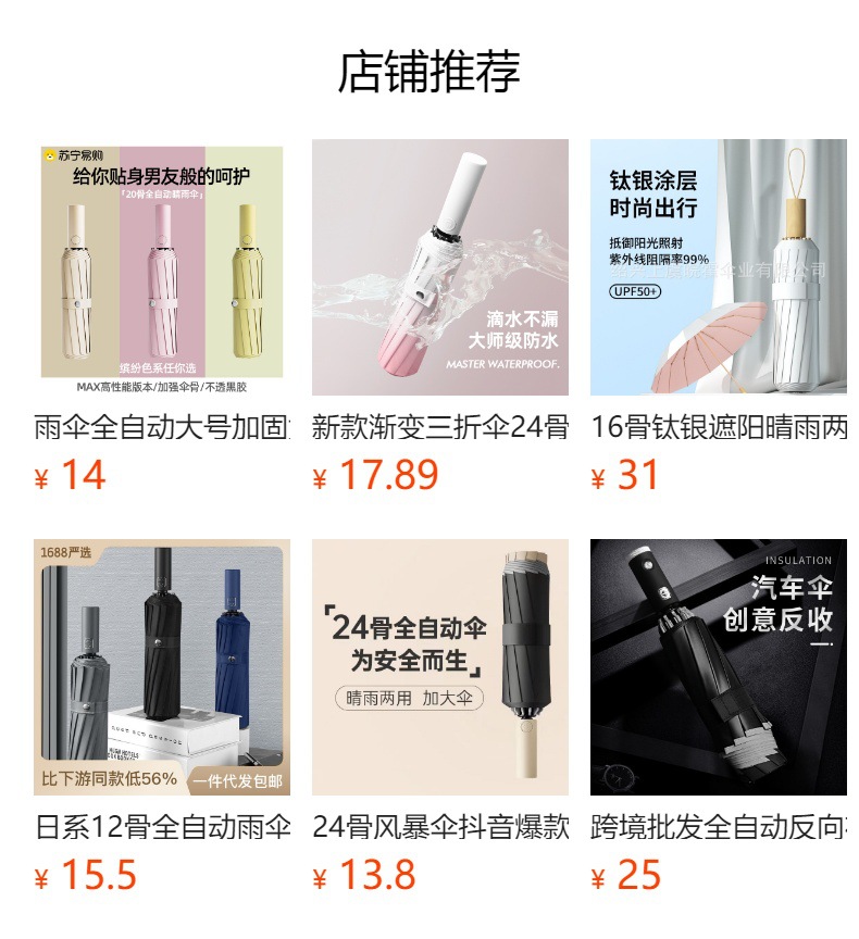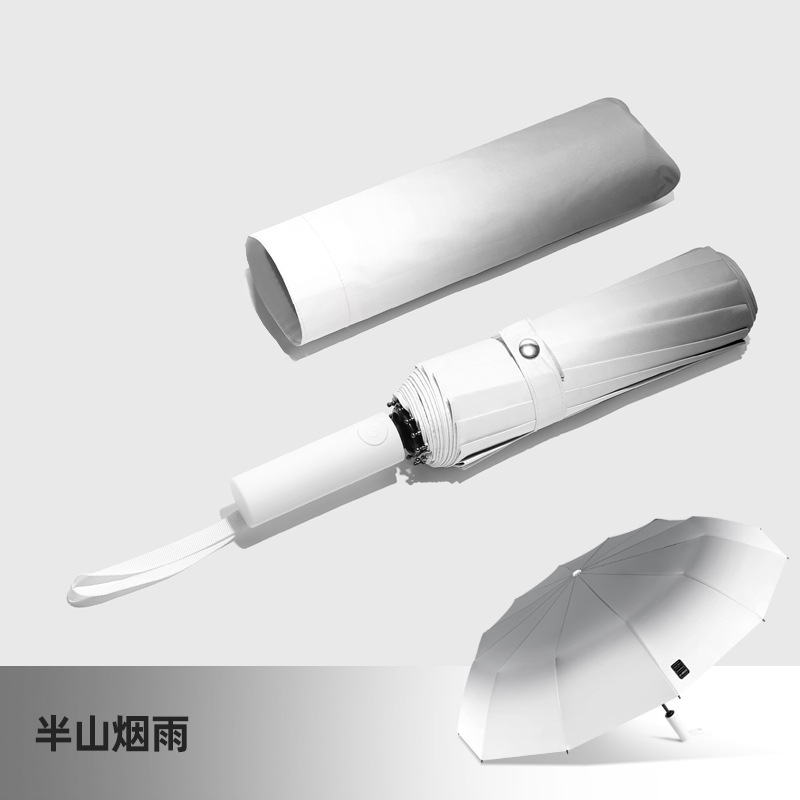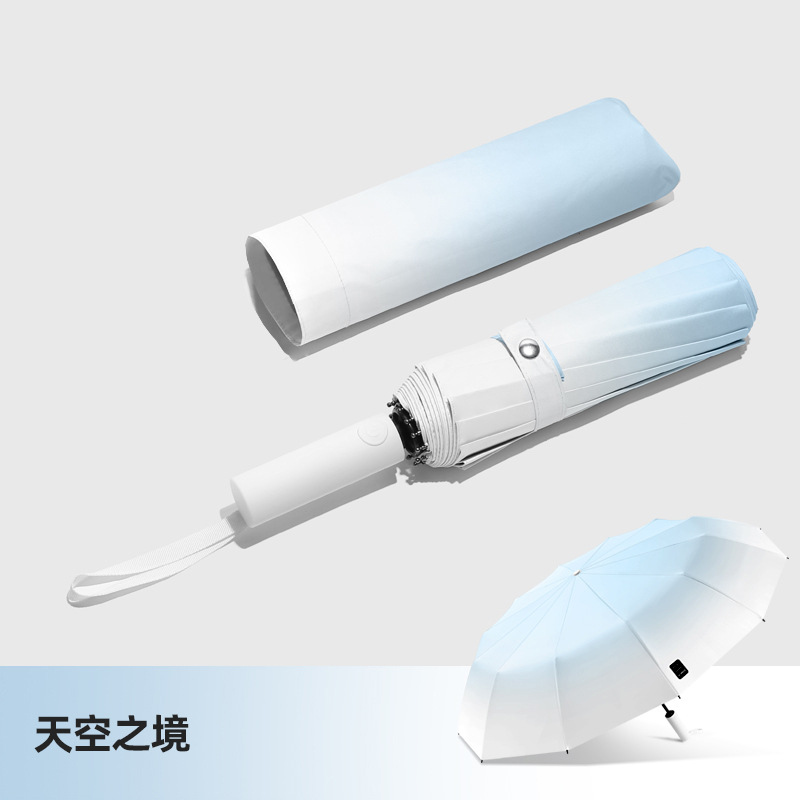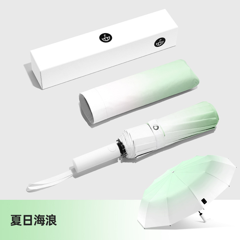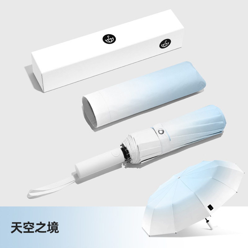 두꺼운 대형 자동 우산 접이식 블랙 글로시 자외선 차단 여성용 양용 우산 도매용스토어 가기