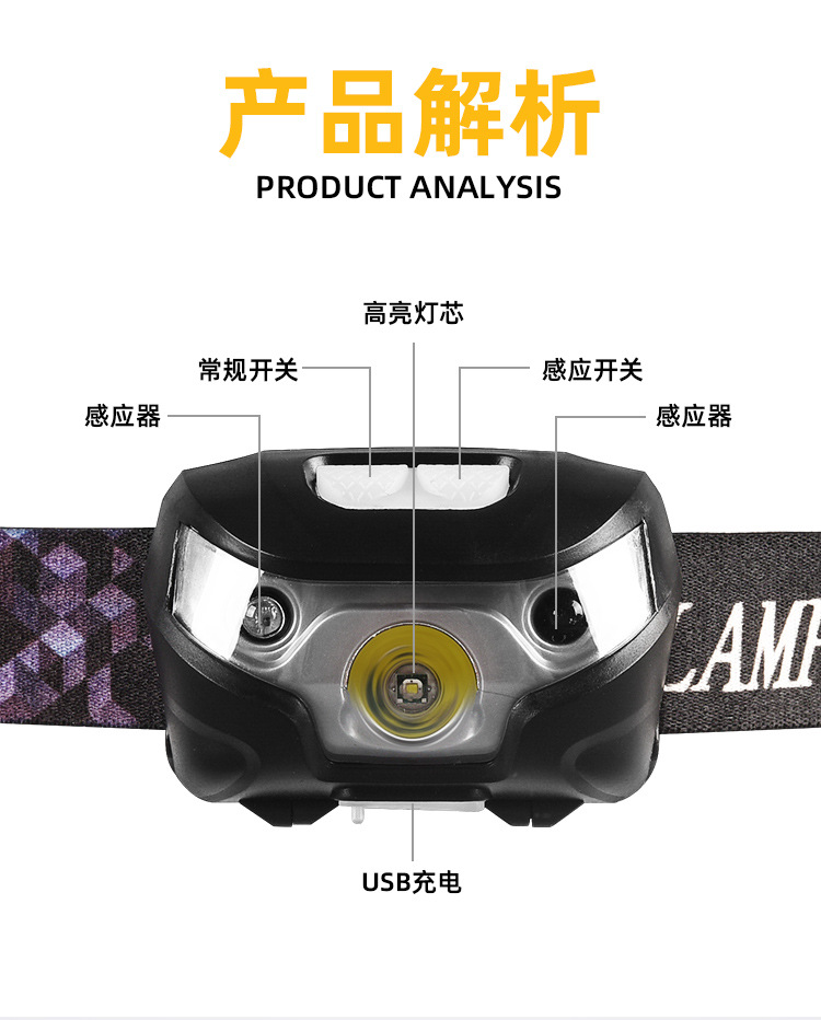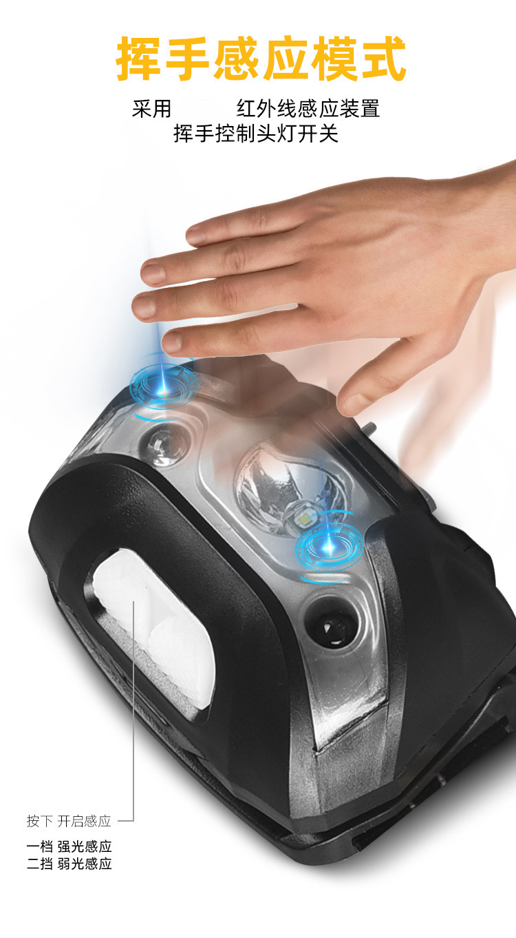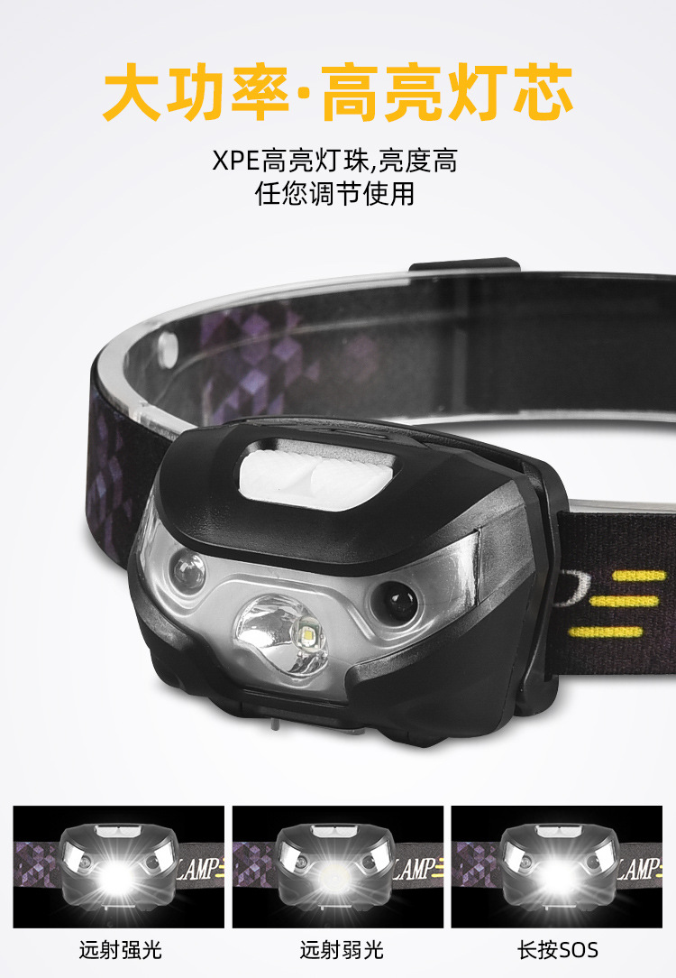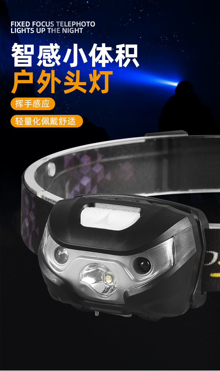 도매 흔들기 유도 전조등 야간 러닝 야간 낚시 등 USB 충전 헤드 휴대용 LED 야외 낚시 조명 헤드 라이트
