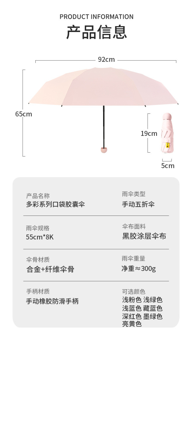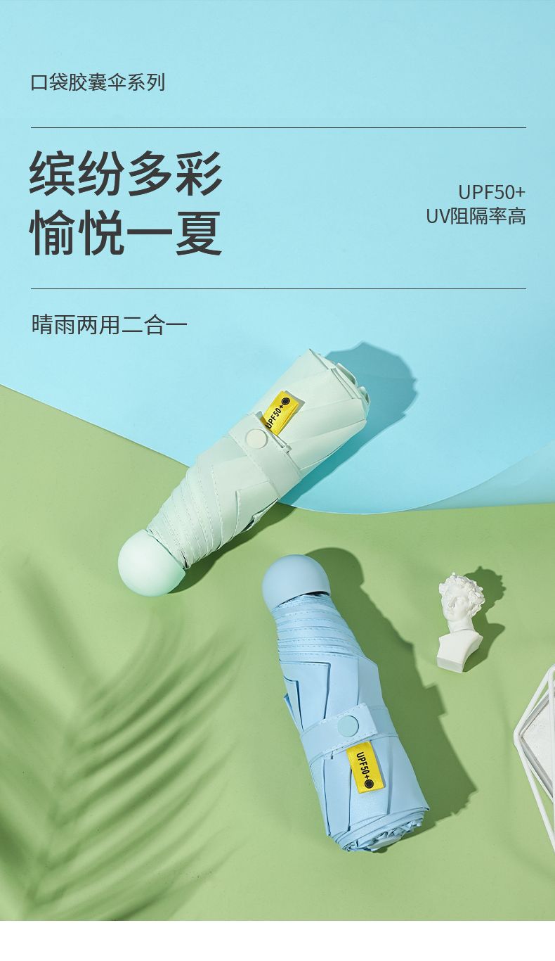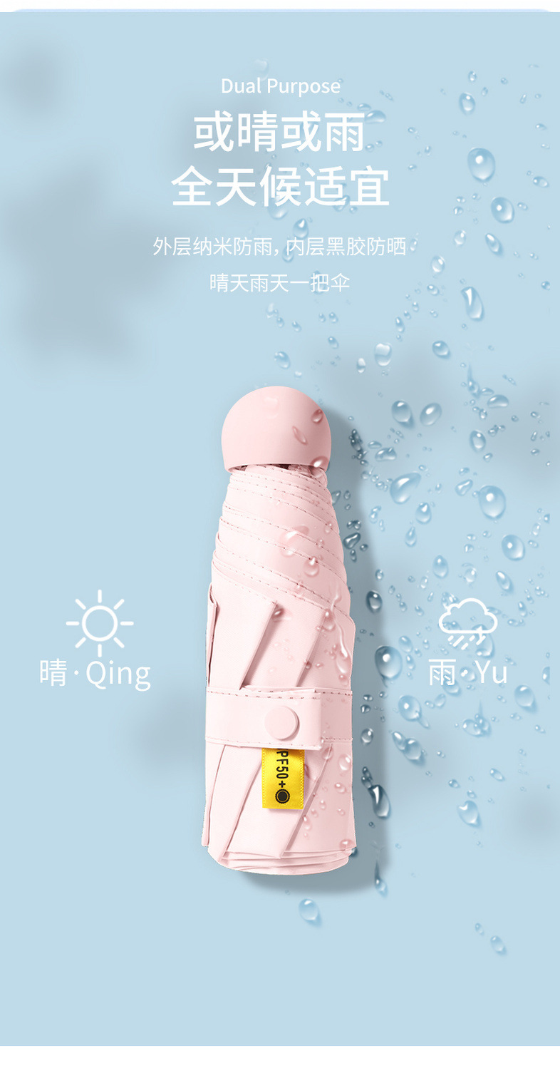 초경량 태양 우산 여성용 자외선 차단제 우산 5 배 이중 사용 캡슐 우산 작고 휴대용스토어 가기