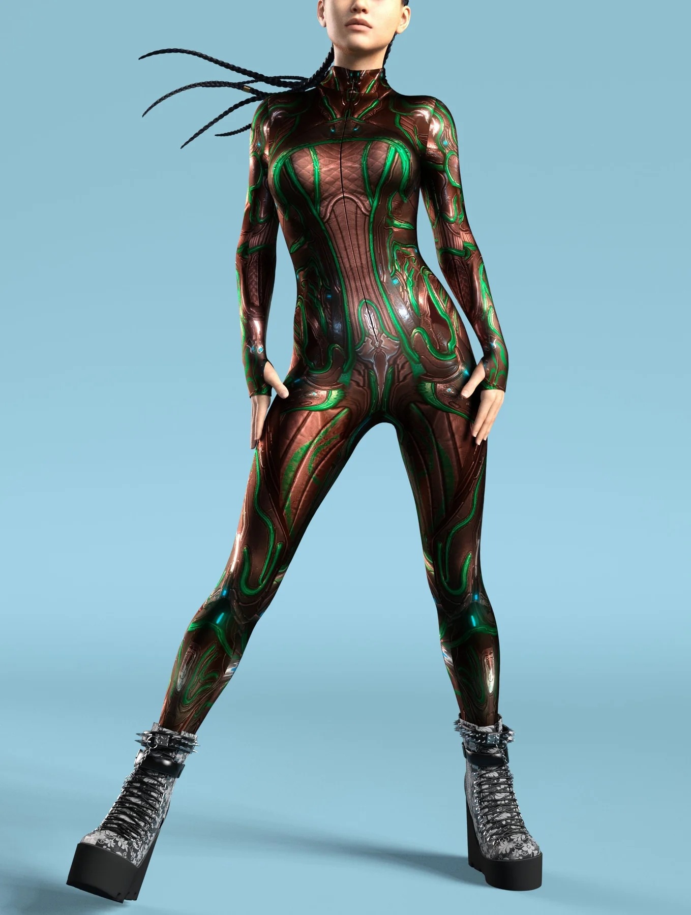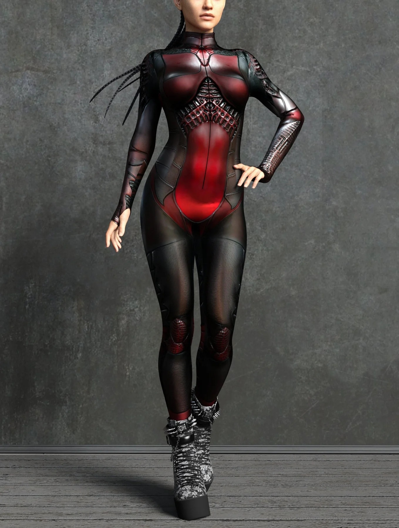 2023 유럽과 미국의 새로운 여성 인쇄 모든 성도 COS 근육 메카 다채로운 의상 버클 꽉 점프 슈트