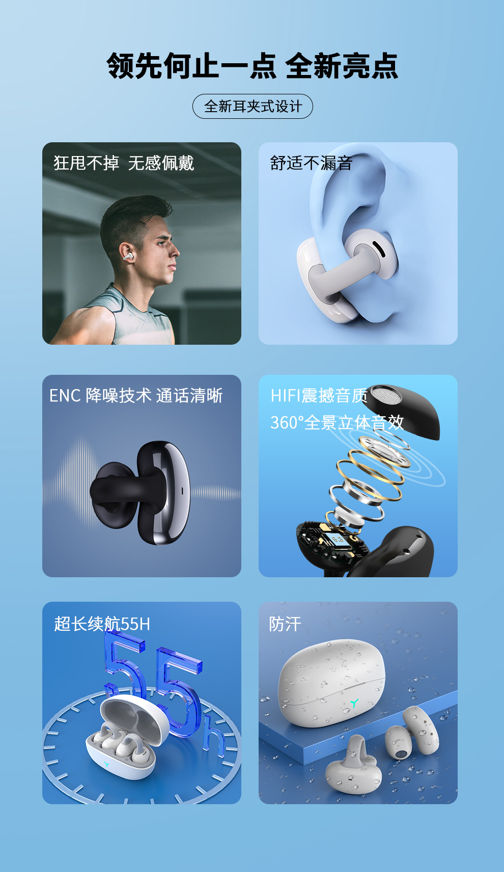 공장 무선 블루투스 헤드셋이 귀에 들어 가지 않습니다 뼈 전도 클립 온 이어 스포츠 개인 모델 소음 감소 스포츠 방수 크로스 보더