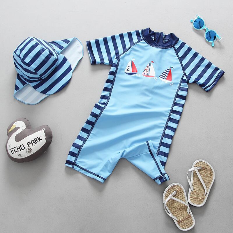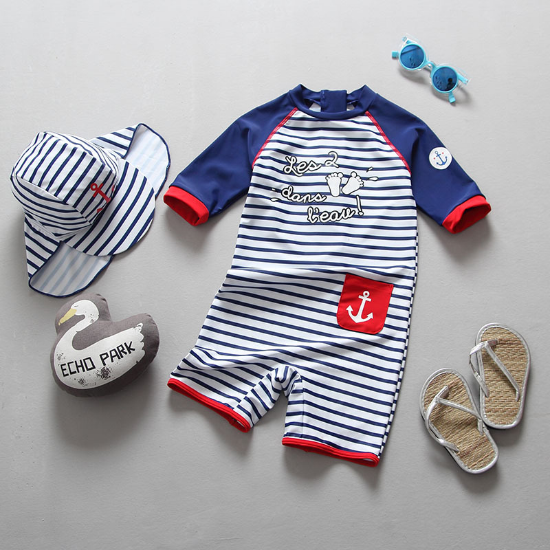 통관 폭발 어린이 수영복 남성용 어린이 원피스 스트라이프 자외선 차단제 수영복 귀여운 아기 수영복 남성용 유아스토어 가기