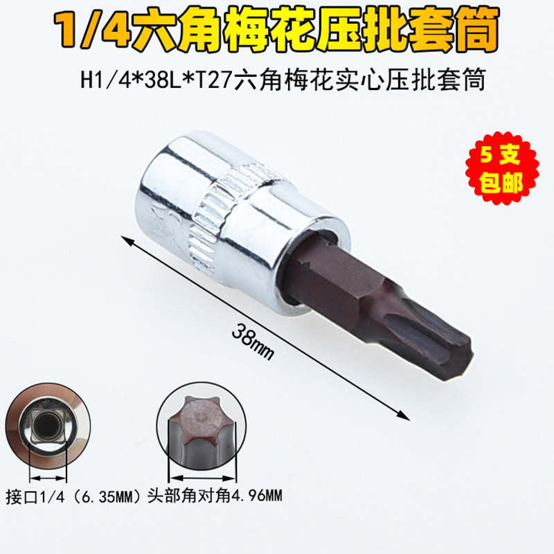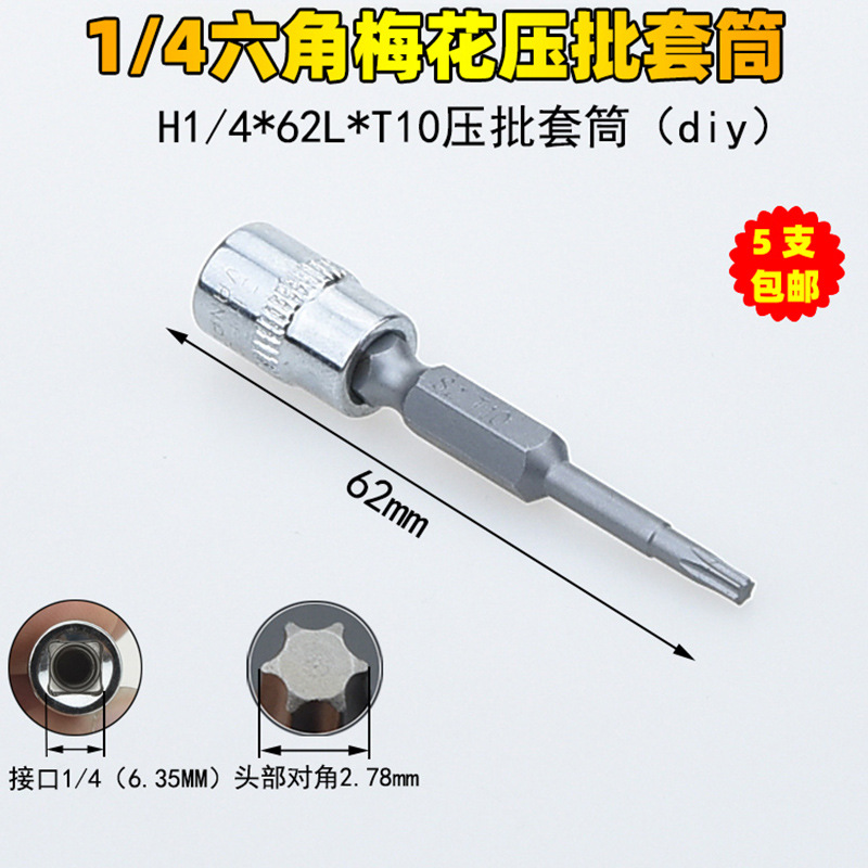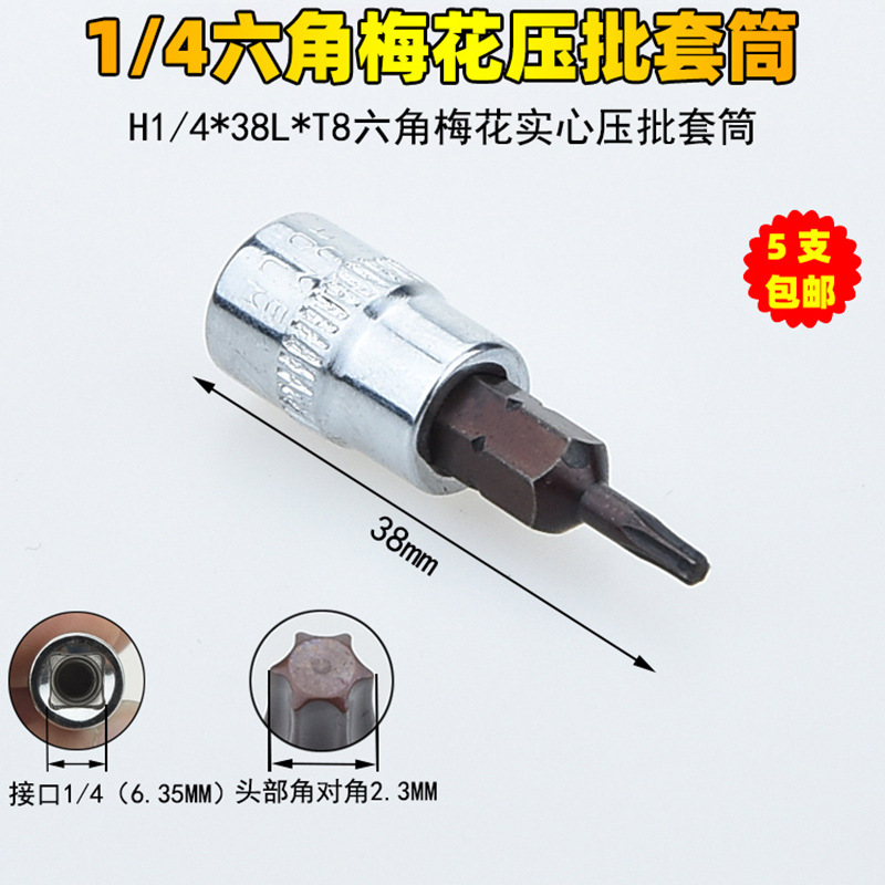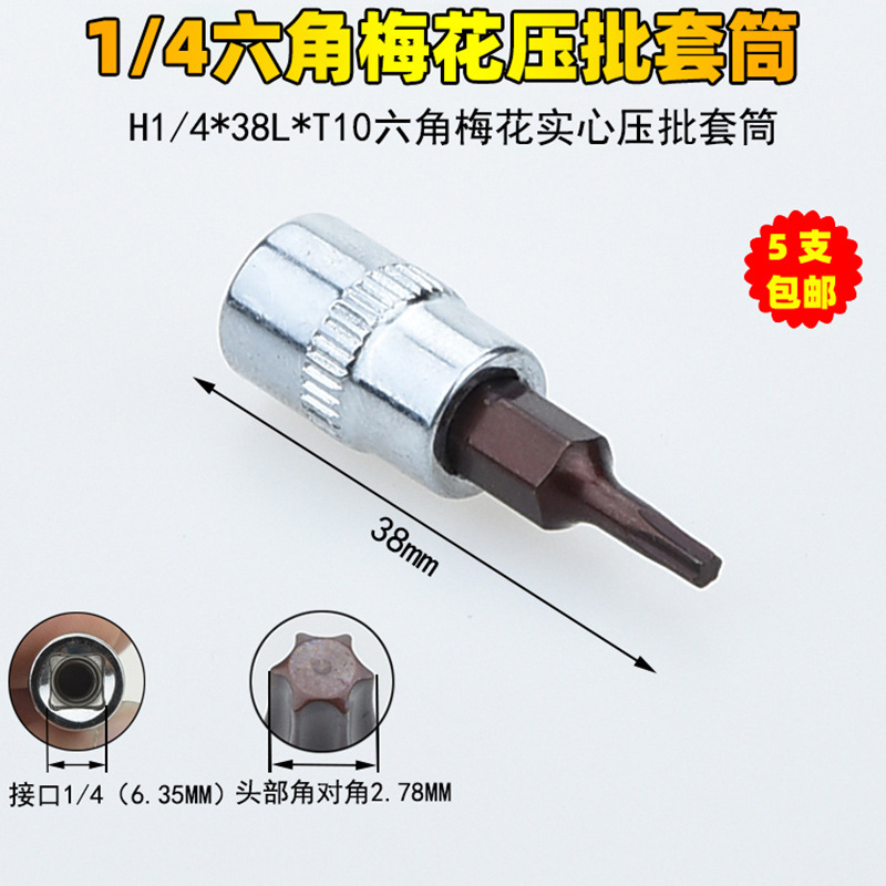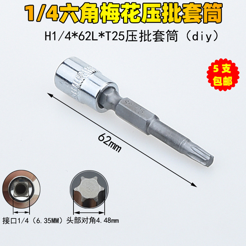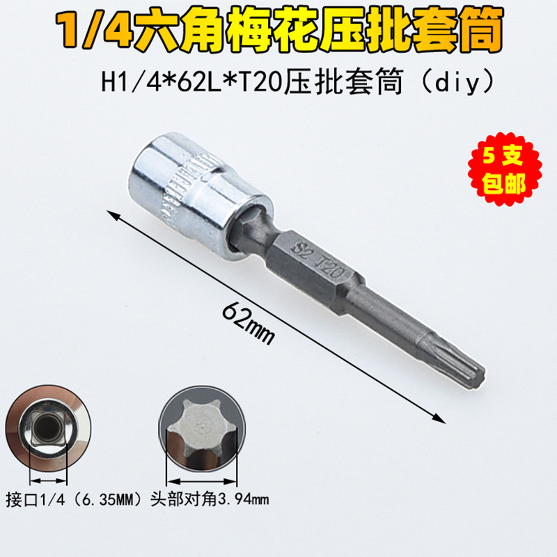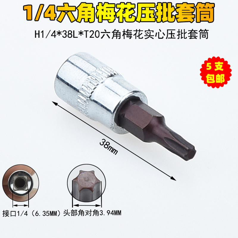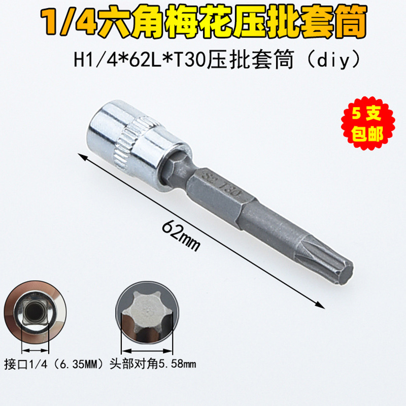 1/4 매화 프레스 배치 슬리브 6.35 프레스 핏 프레스 배아 스크루 드라이버 슬리브 소형 플라이 6 꽃 스크루 드라이버 T6-T40스토어 가기