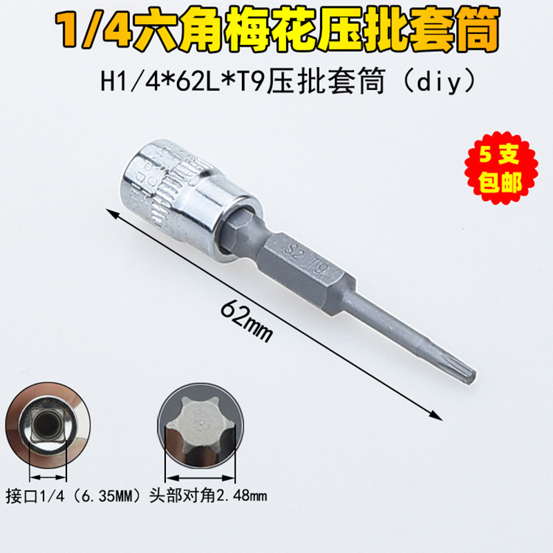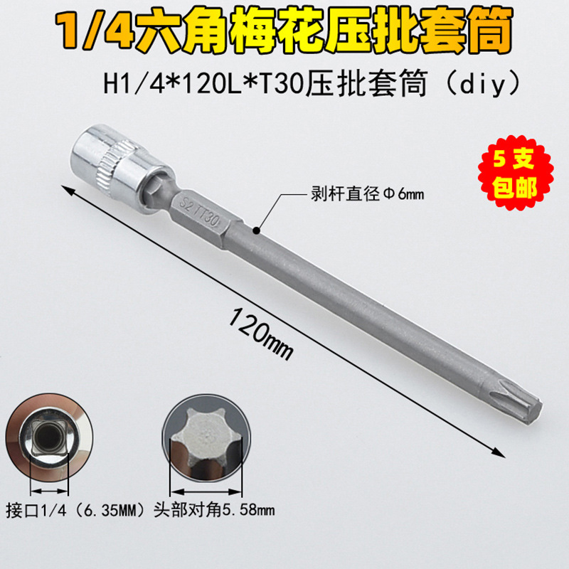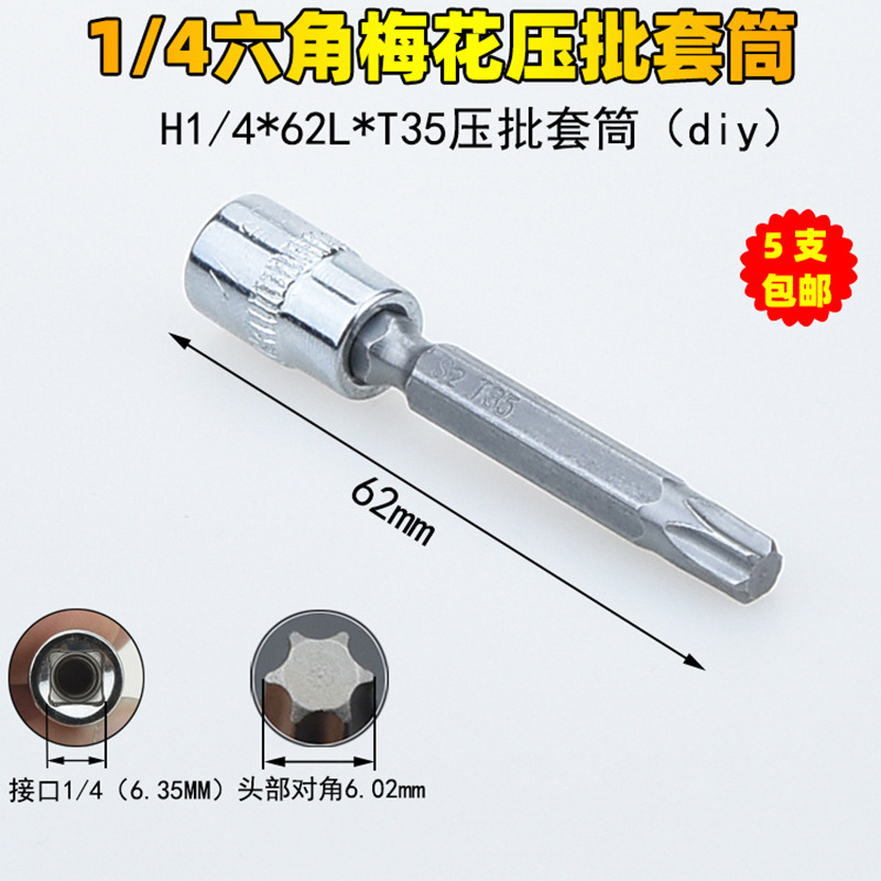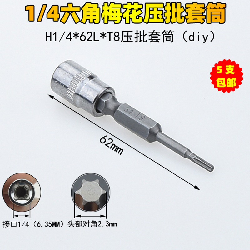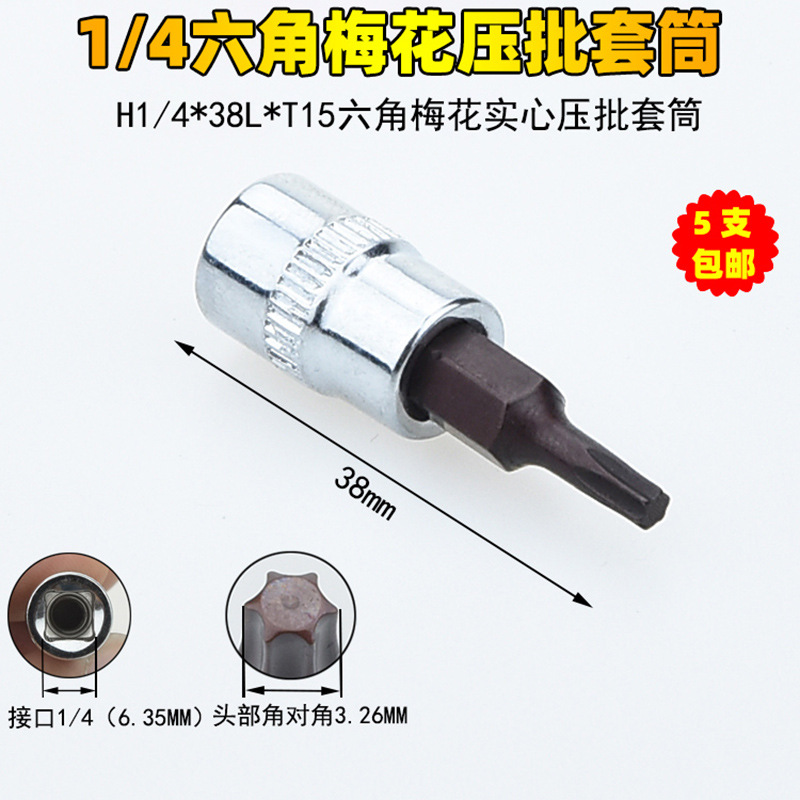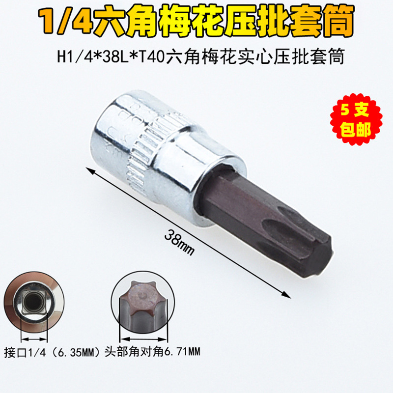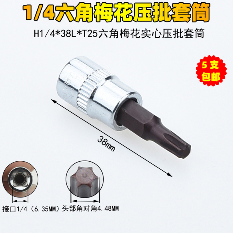 1/4 매화 프레스 배치 슬리브 6.35 프레스 핏 프레스 배아 스크루 드라이버 슬리브 소형 플라이 6 꽃 스크루 드라이버 T6-T40스토어 가기
