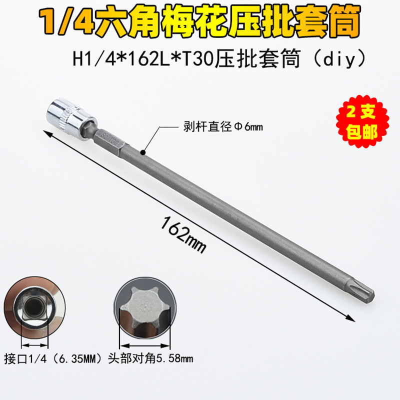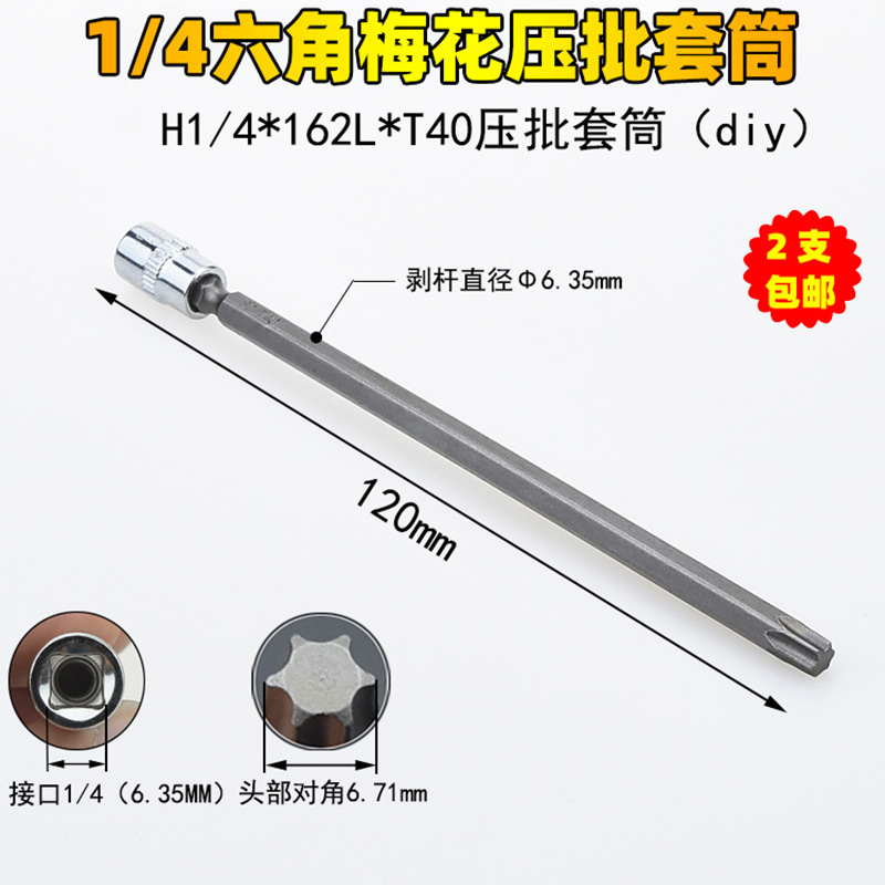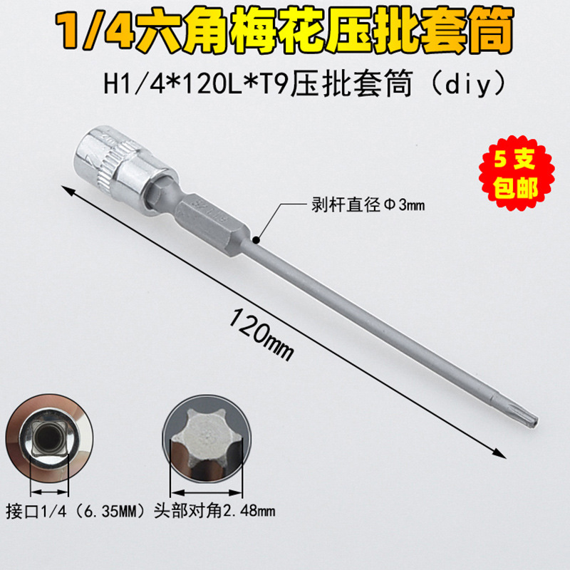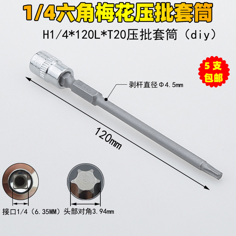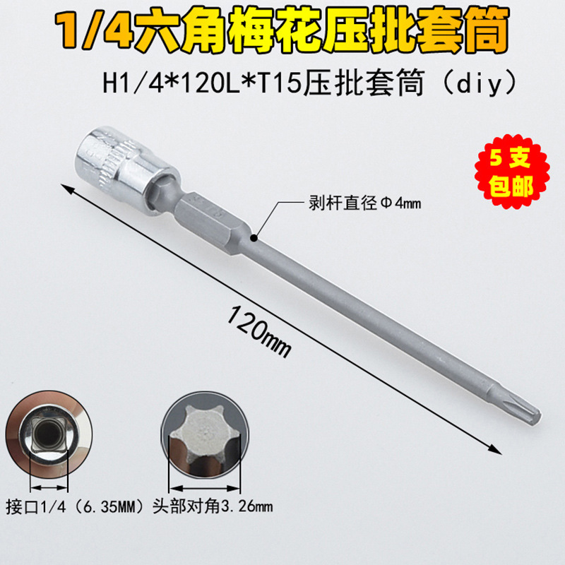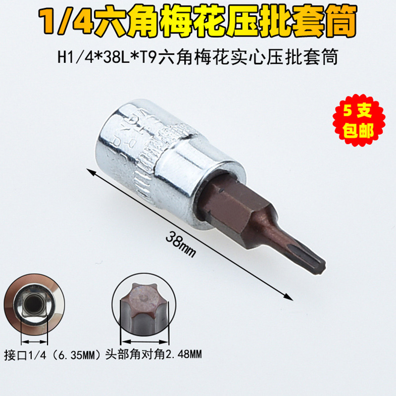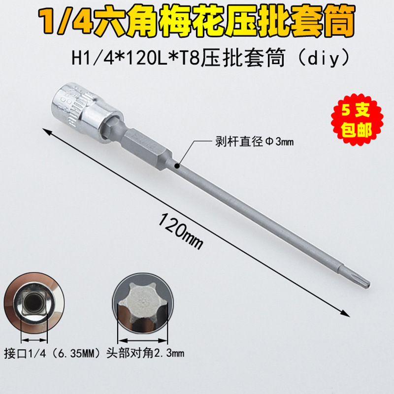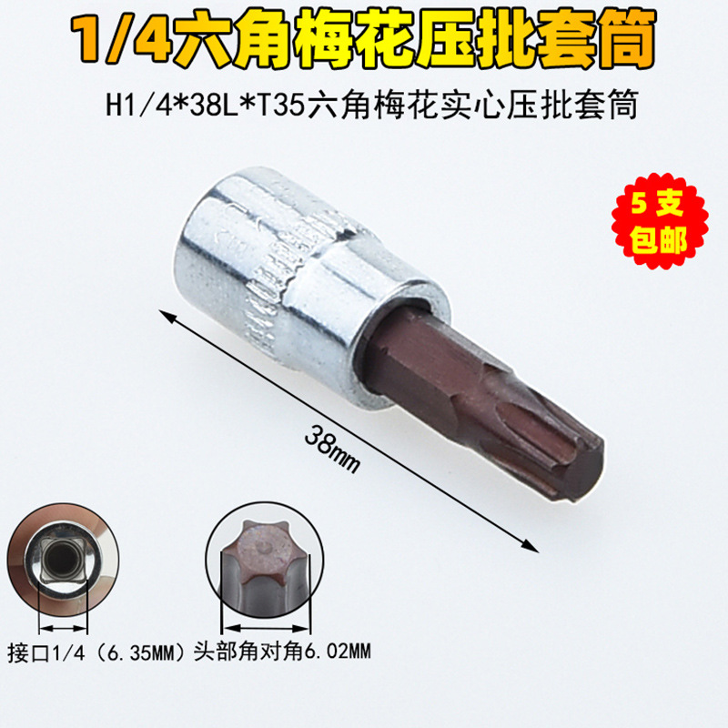 1/4 매화 프레스 배치 슬리브 6.35 프레스 핏 프레스 배아 스크루 드라이버 슬리브 소형 플라이 6 꽃 스크루 드라이버 T6-T40스토어 가기