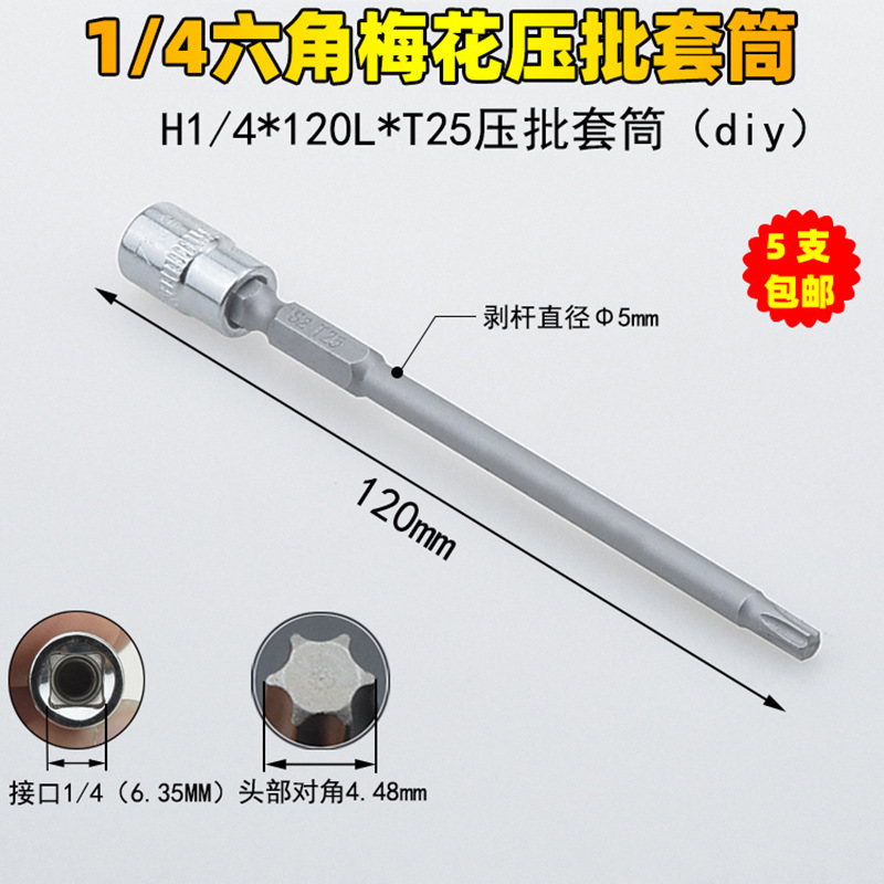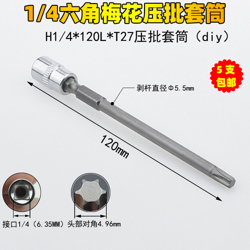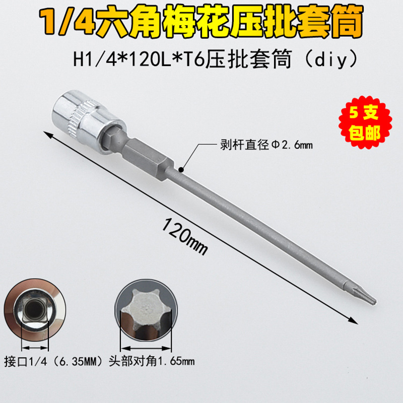 1/4 매화 프레스 배치 슬리브 6.35 프레스 핏 프레스 배아 스크루 드라이버 슬리브 소형 플라이 6 꽃 스크루 드라이버 T6-T40