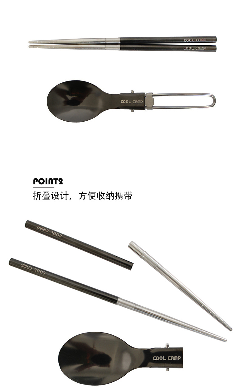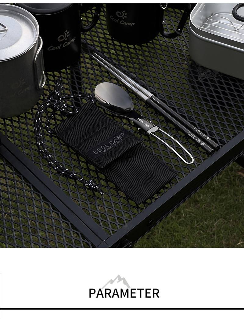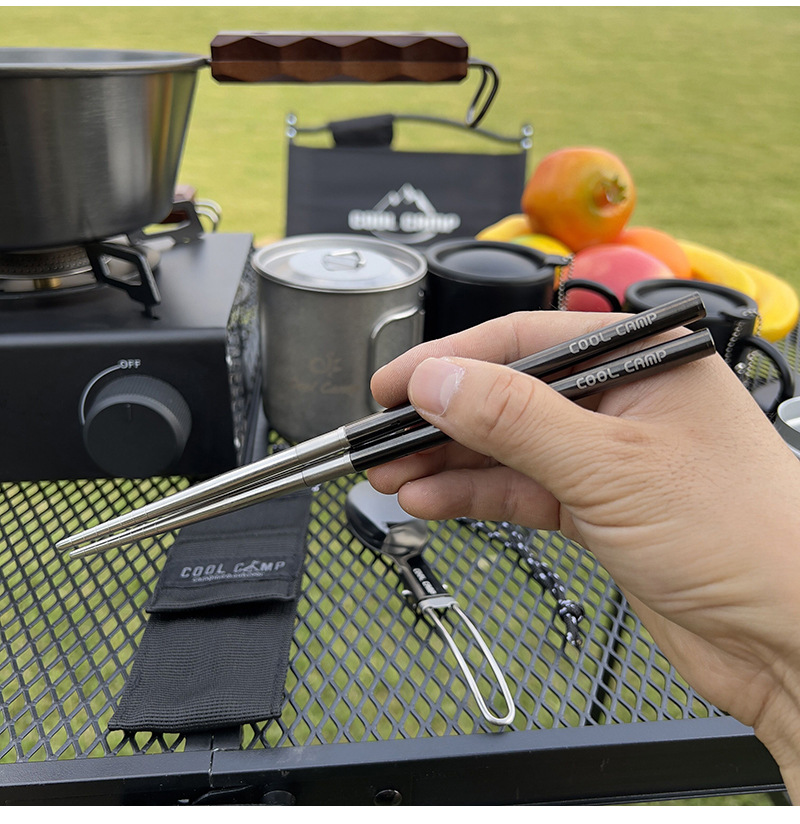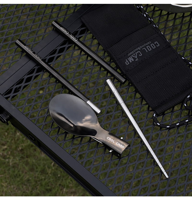 야외 캠핑 304 스테인레스 스틸 접이식 숟가락 젓가락 세트 피크닉 등산 타기 여행 휴대용 식기