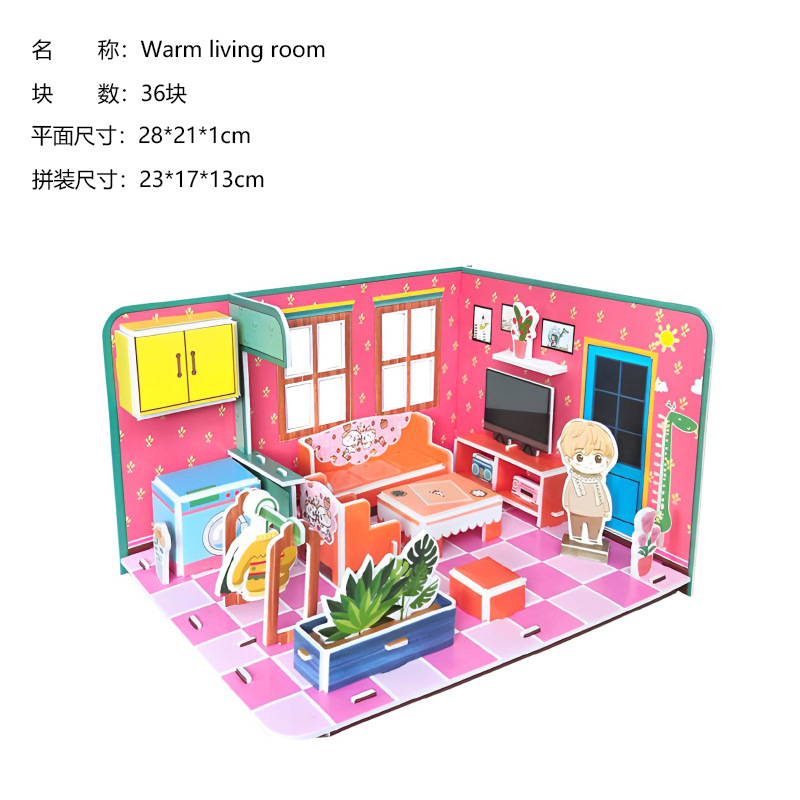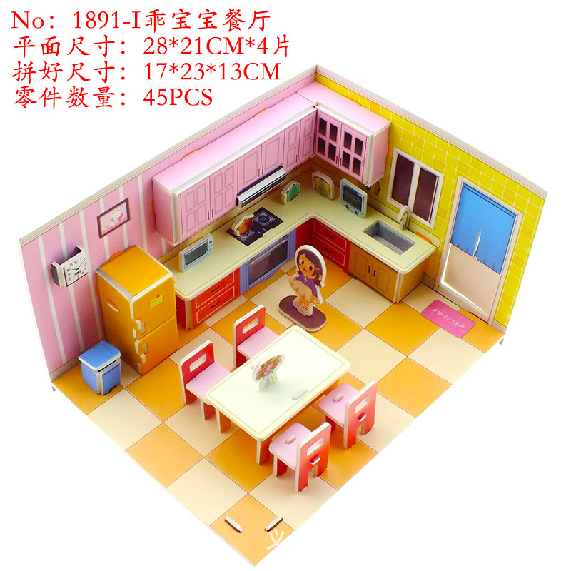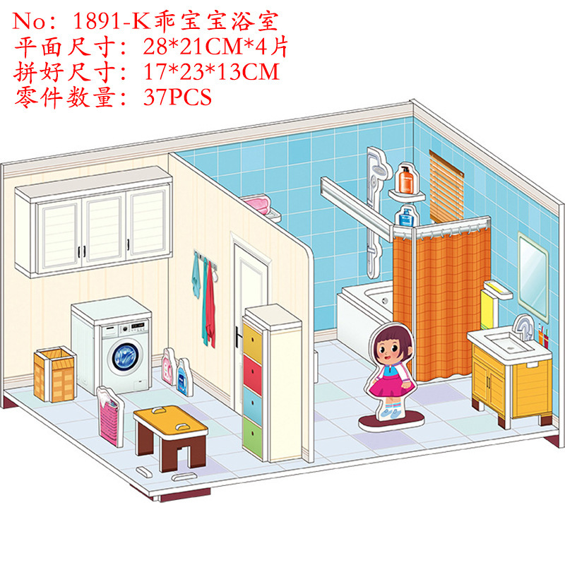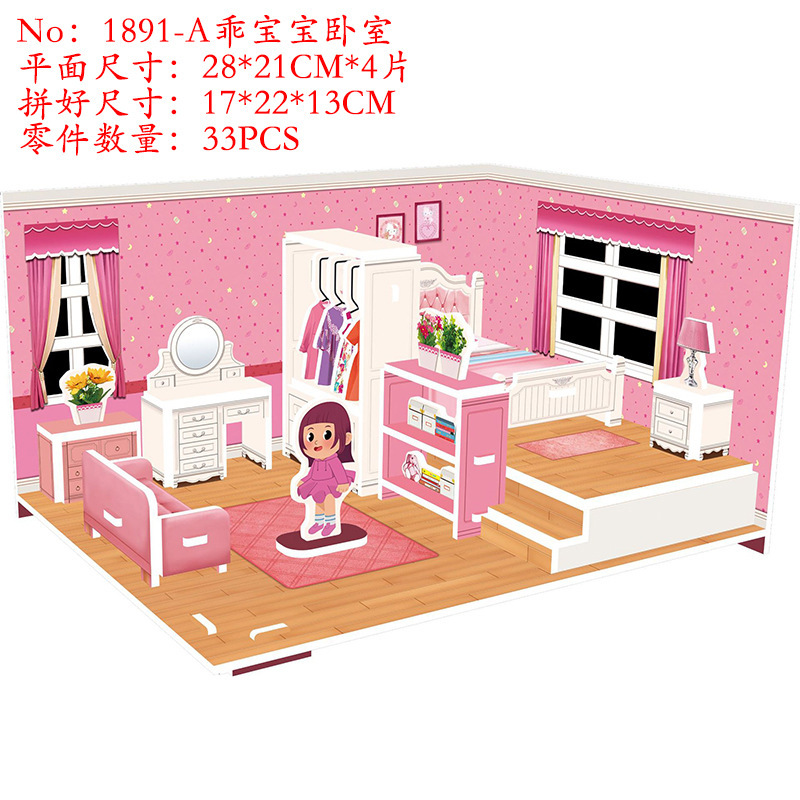화이트 카드 3D 입체 큰 4 조각 종이 직소 퍼즐 장난감 장면 소녀 시리즈 선물 어린이를위한 3D 직소 퍼즐 장난감