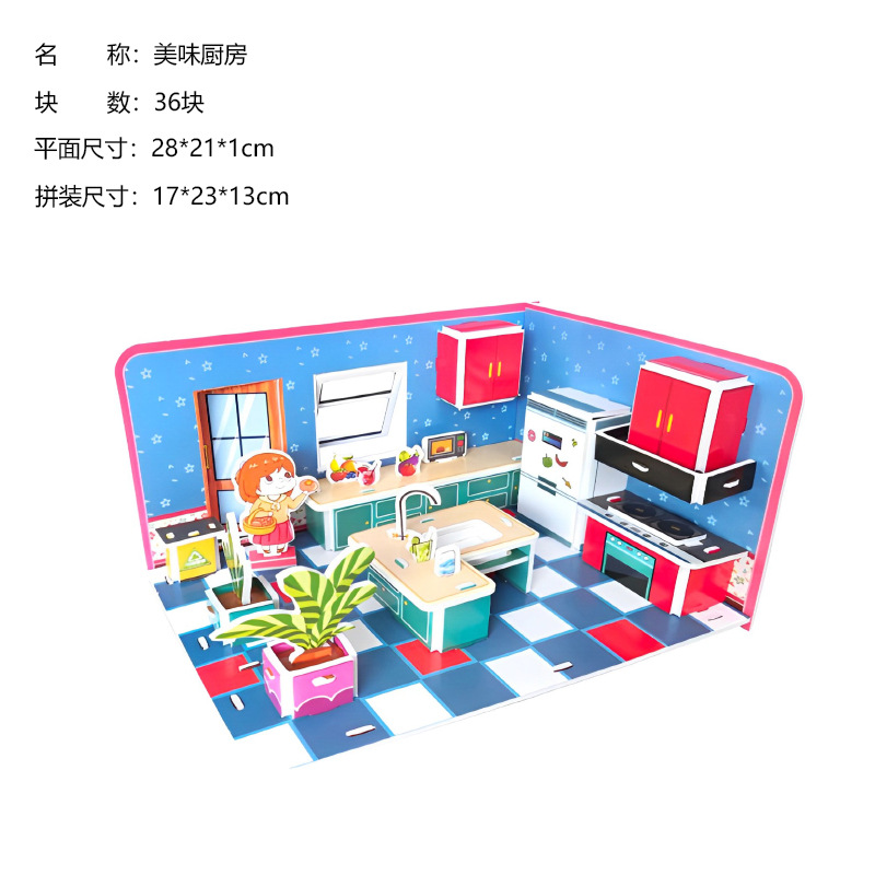 화이트 카드 3D 입체 큰 4 조각 종이 직소 퍼즐 장난감 장면 소녀 시리즈 선물 어린이를위한 3D 직소 퍼즐 장난감스토어 가기