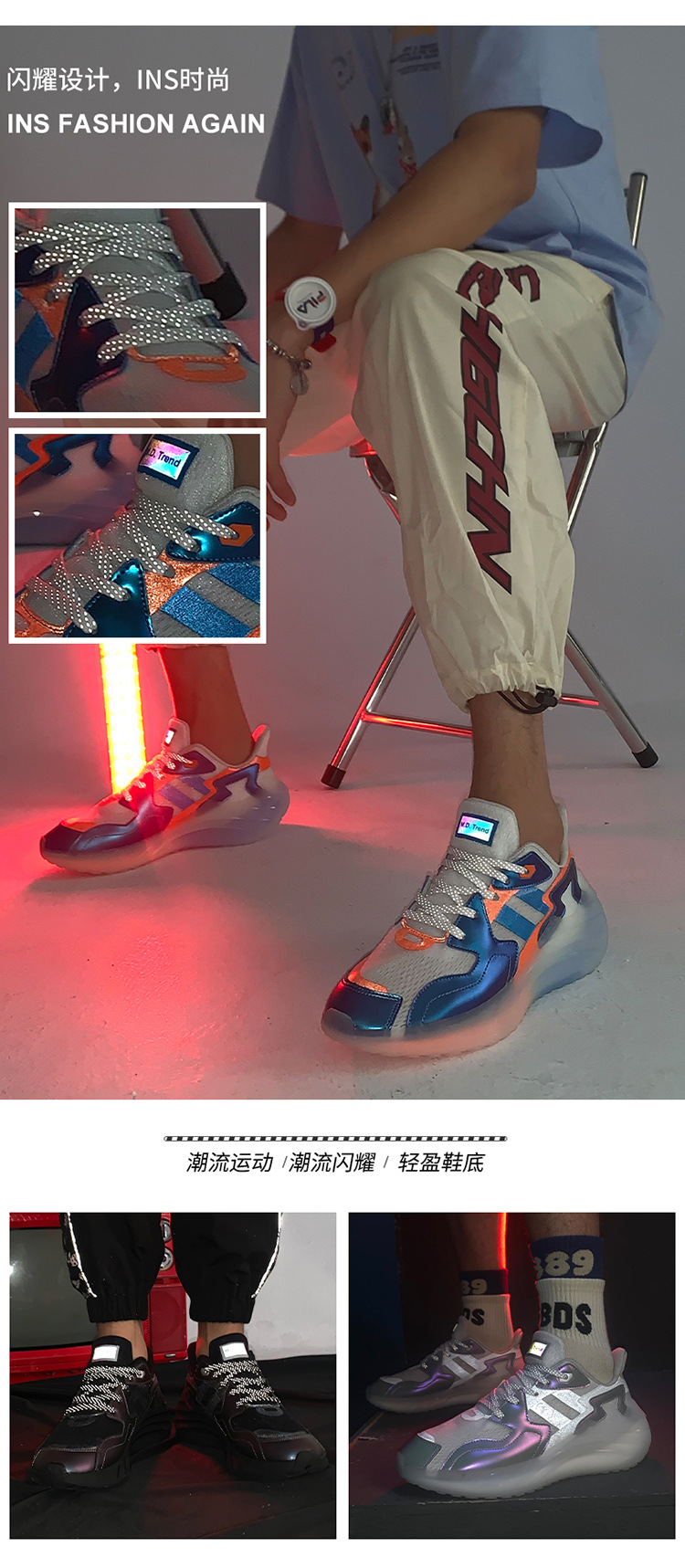 2023 여름 새로운 크로스 보더 트렌디 남성 신발 편안한 통기성 발광 플러스 사이즈 트렌디 남성 캐주얼 운동화 러닝화