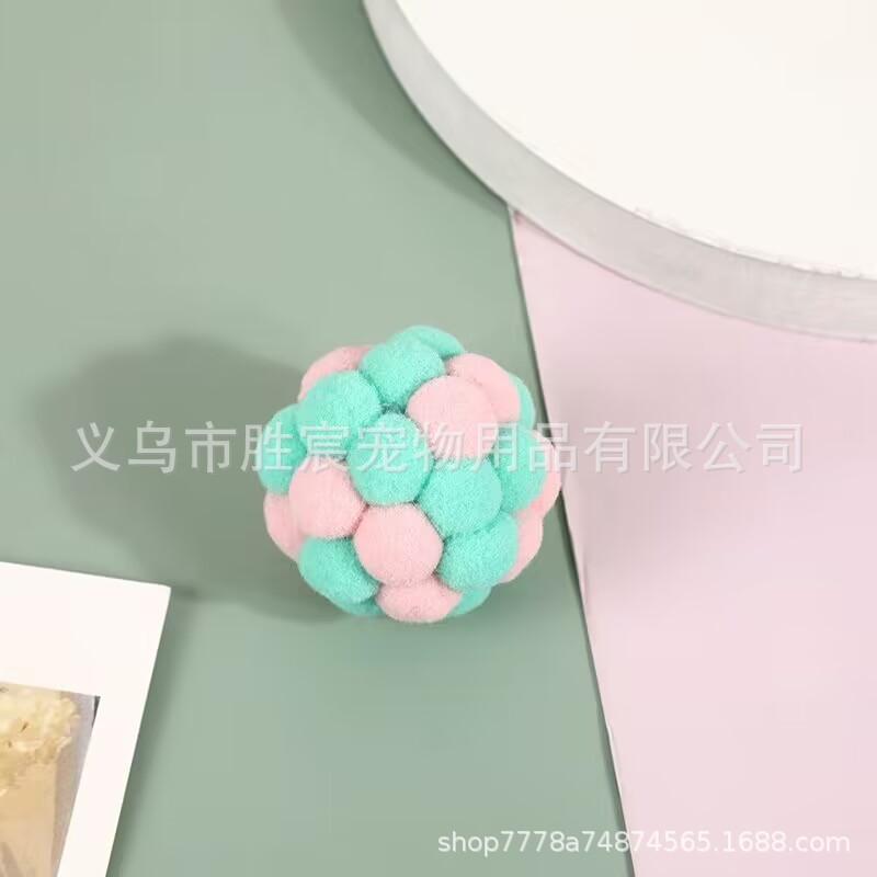 고양이 장난감 봉제 벨 볼 탄성 다채로운 봉제 공 자기 구호 무지개 공 고양이 장난감 애완 동물 용품스토어 가기