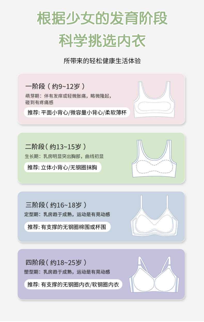 2 단 발달기 여자 속옷 중학교 여자 큰 아이 소 조끼 사춘기 피부 친화 통기성 여자 브라