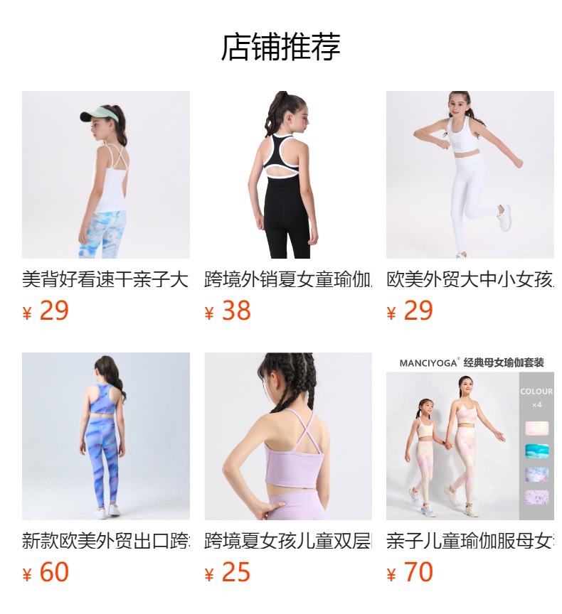 국경 간 대외 무역 어린이 속건 의류 세트 스포츠 피트니스 훈련 소녀를위한 고탄력 피부 친화적 통기성 요가 의류 실행스토어 가기
