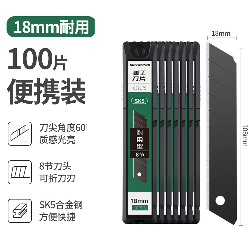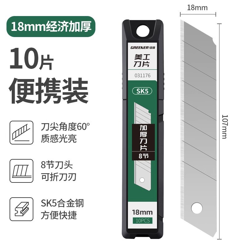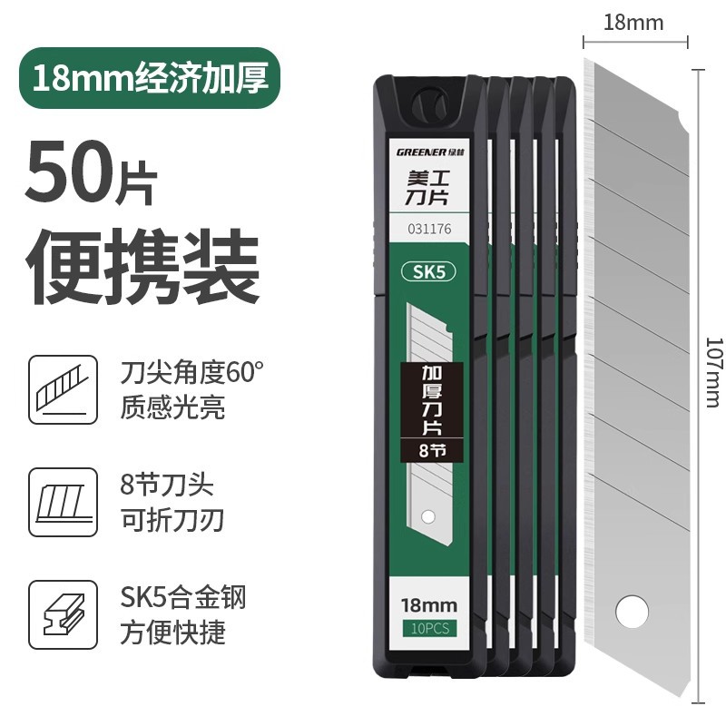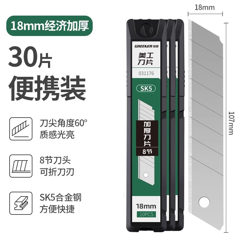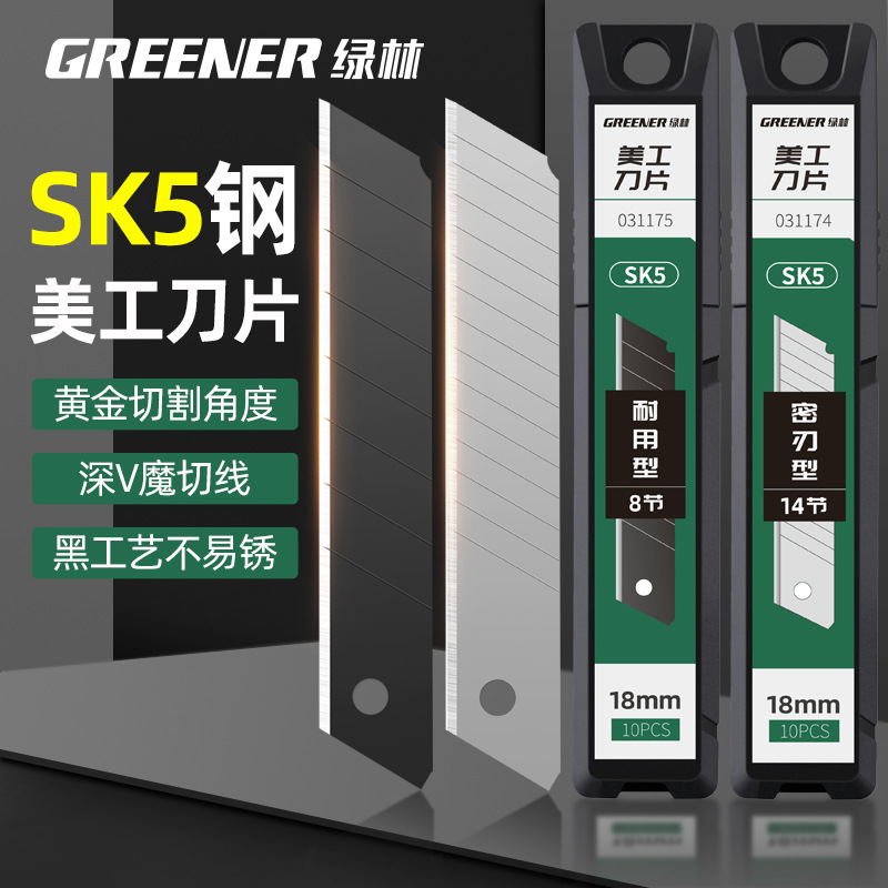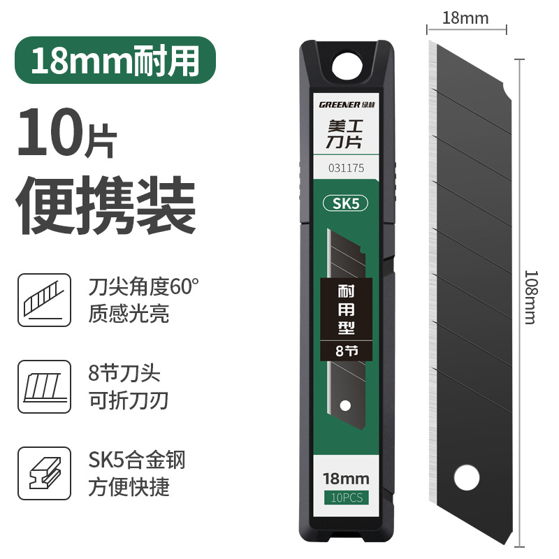 그린 우드 아트 나이프 블레이드 블랙 에지 SK5 합금 스틸 블레이드 대형 18mm 두께 0.6 미국 재봉 칼 종이 칼스토어 가기