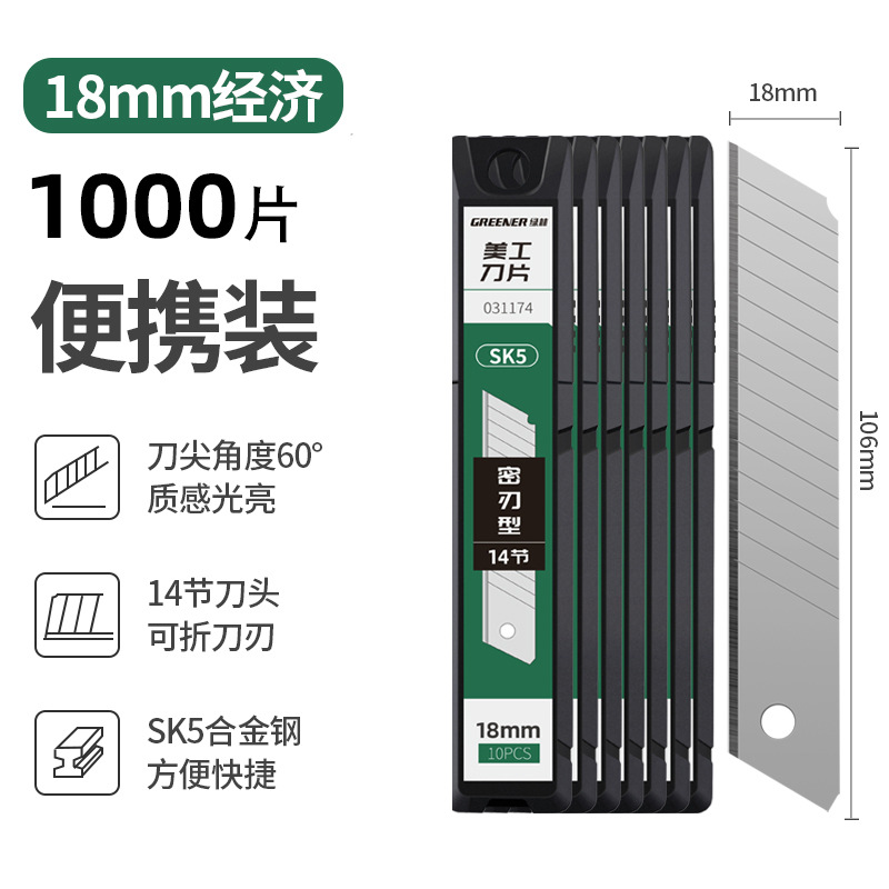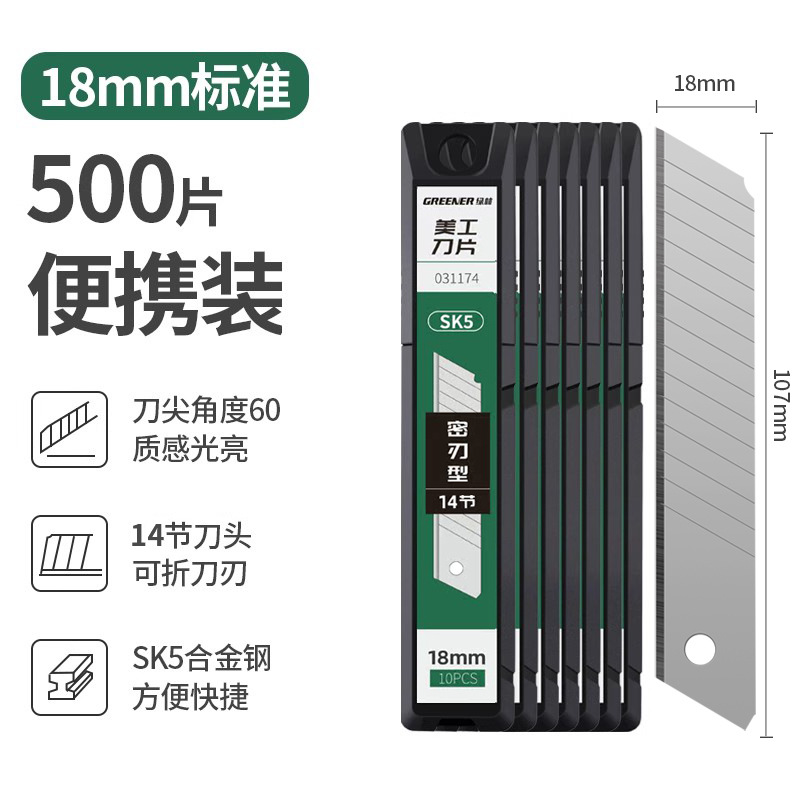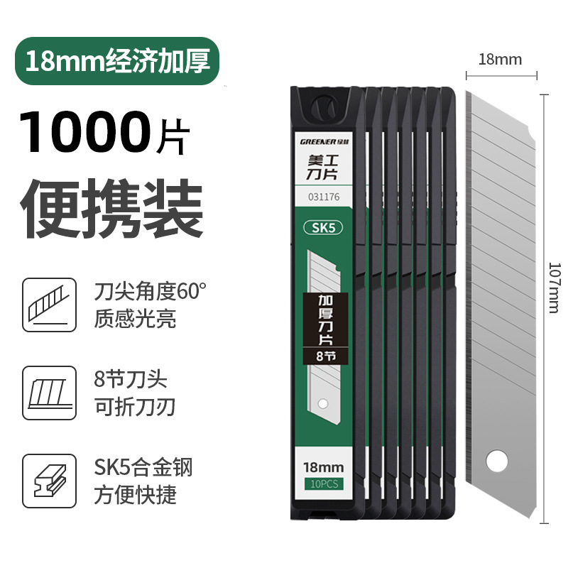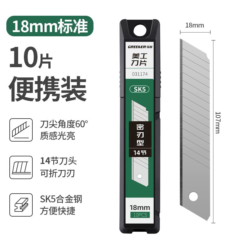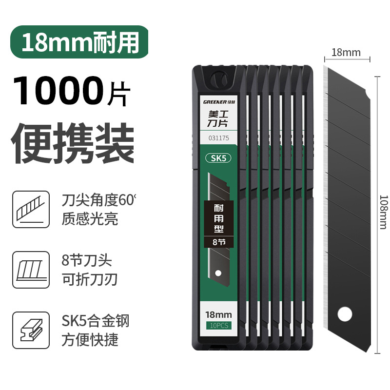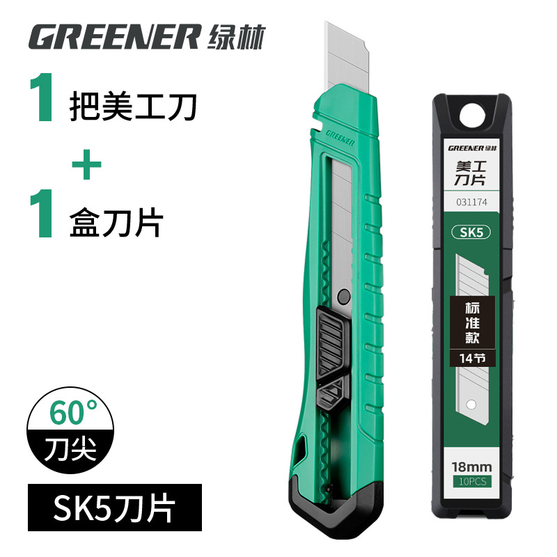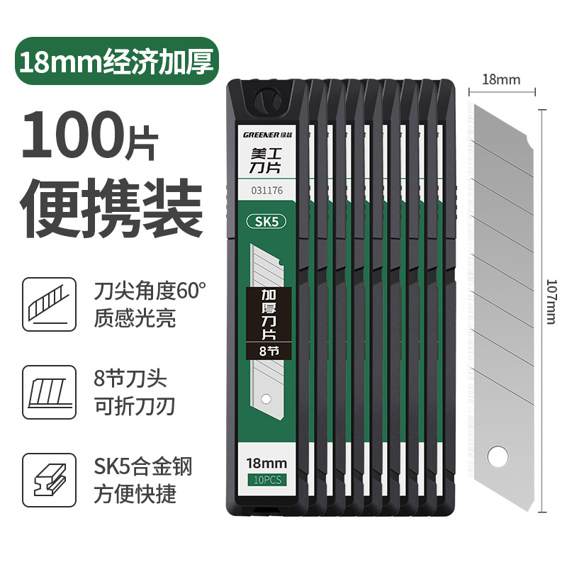 그린 우드 아트 나이프 블레이드 블랙 에지 SK5 합금 스틸 블레이드 대형 18mm 두께 0.6 미국 재봉 칼 종이 칼스토어 가기