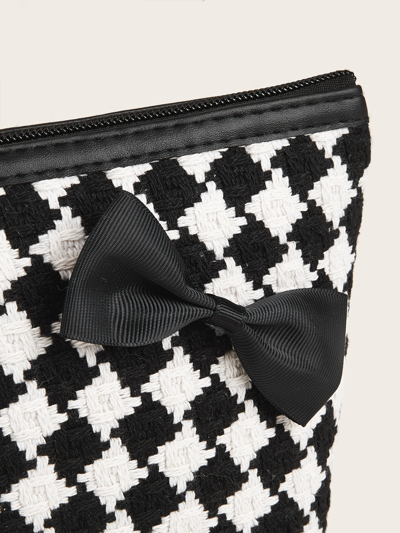 새로운 흑백 격자 무늬 활 휴대용 화장품 가방 대용량 휴대용 가방 휴대용 엄마 외출 간단한 보관 가방