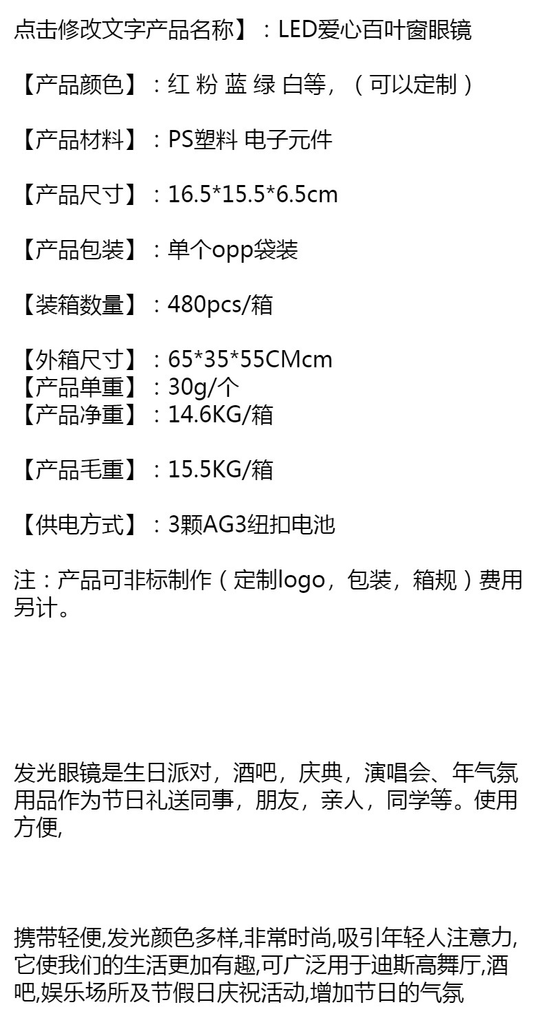 국경 간 뜨거운 판매 빛나는 안경 파티 장식 바 사랑 블라인드 led 음악 축제 마구간 장난감스토어 가기