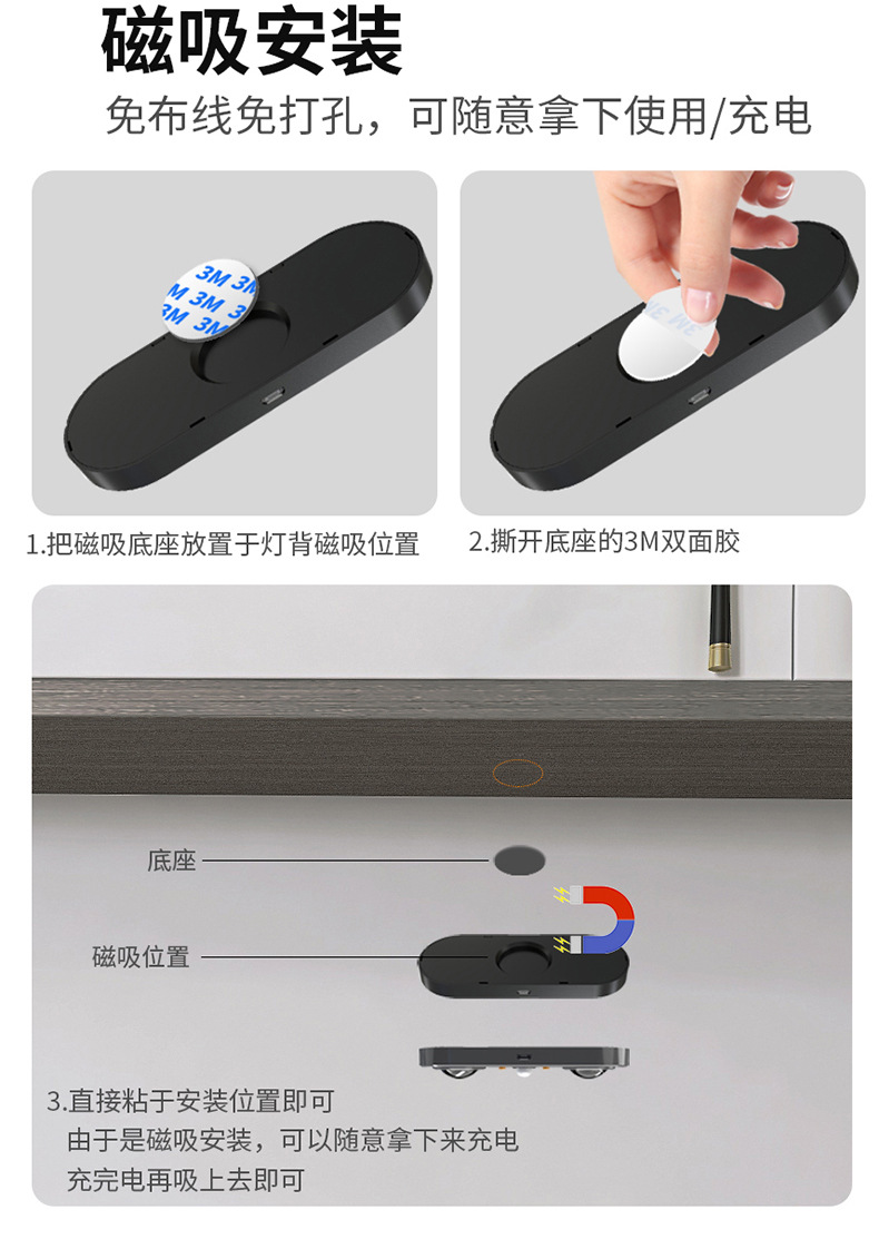 지능형 자기 흡입 무선 충전 캐비닛 유도 램프 소형 모래 언덕 대기 램프 핸드 램프 휴먼 터치 야간 조명
