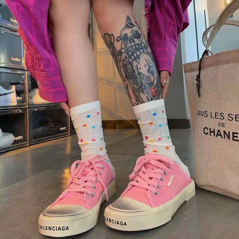 여성용 고가 일본 컬러 웨이브 도트 양말 여름 얇은 통기성 여성용 중간 튜브 양말 간단한 도트 원사 스타킹스토어 가기