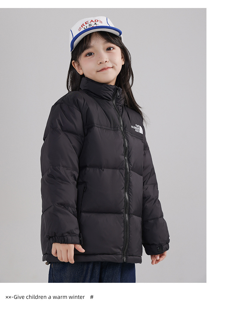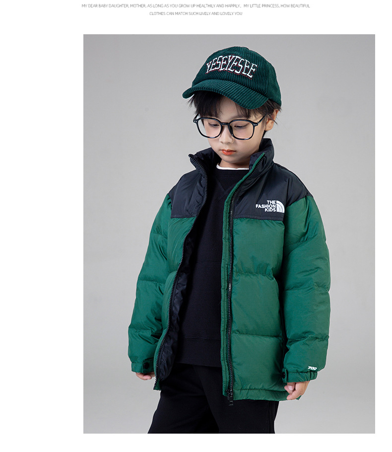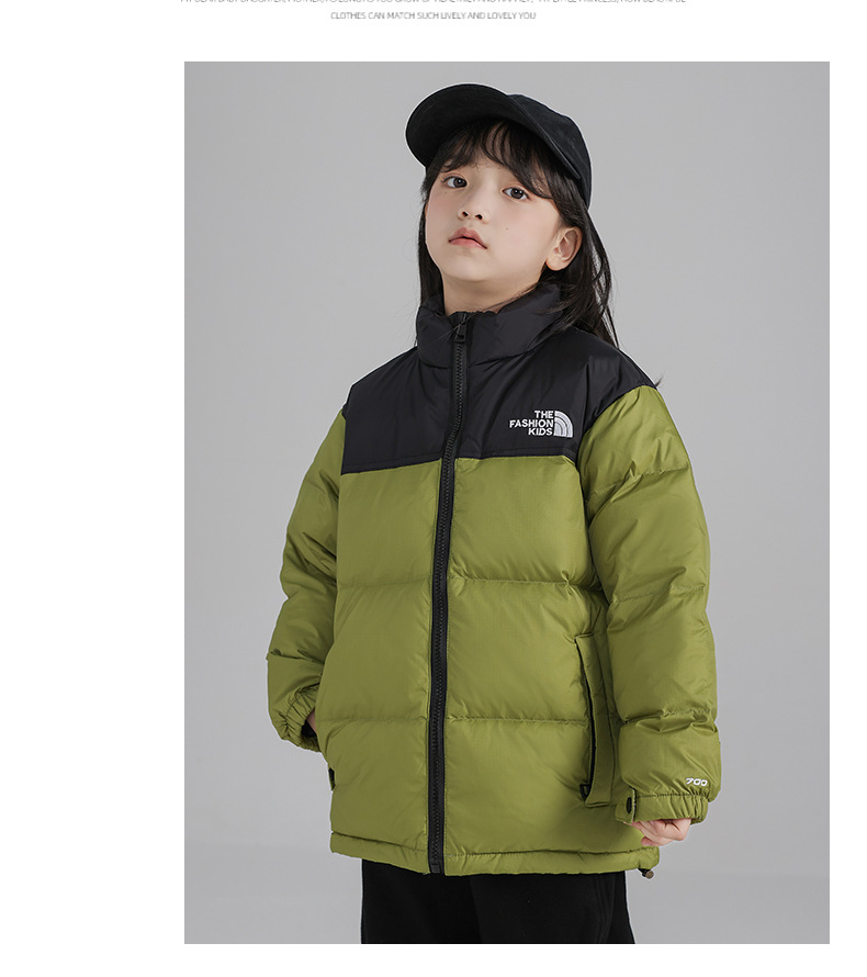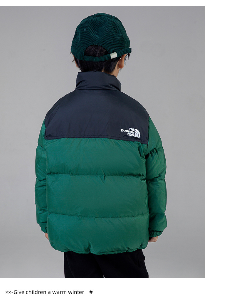 어린이용 다운 재킷 2025 신상 남아 여아 중대형 어린이용 배색 두꺼운 후드 짧은 스타일 흰색 오리털 겨울 코트스토어 가기