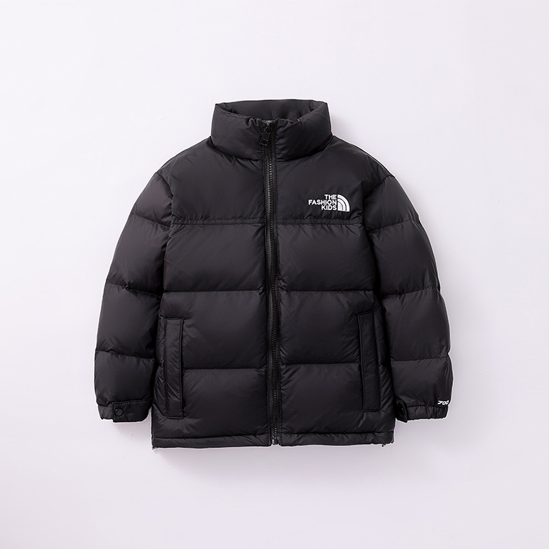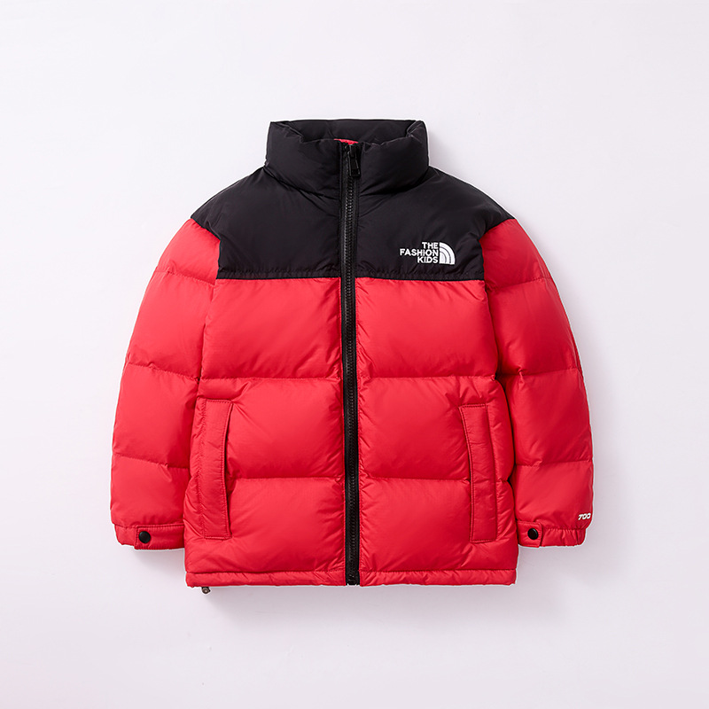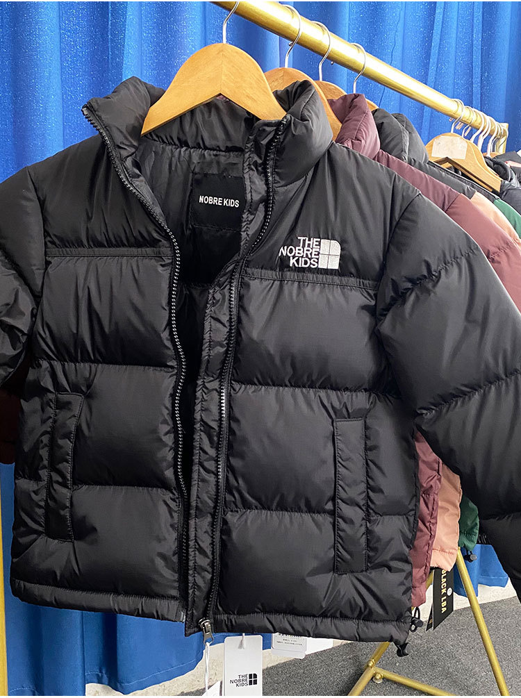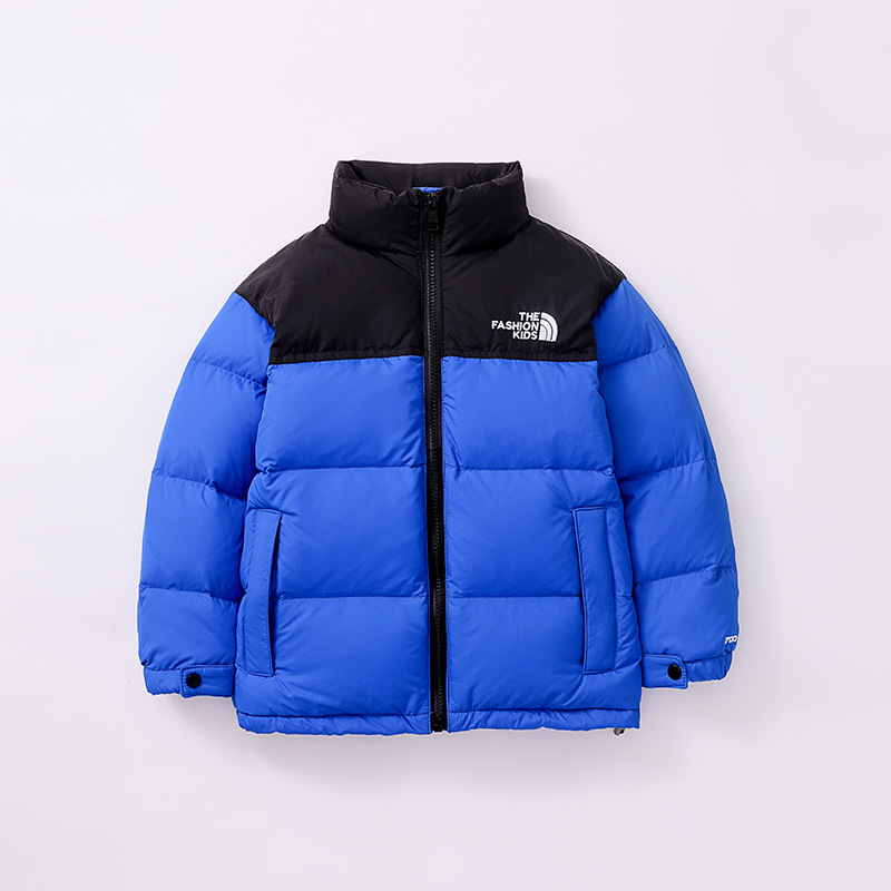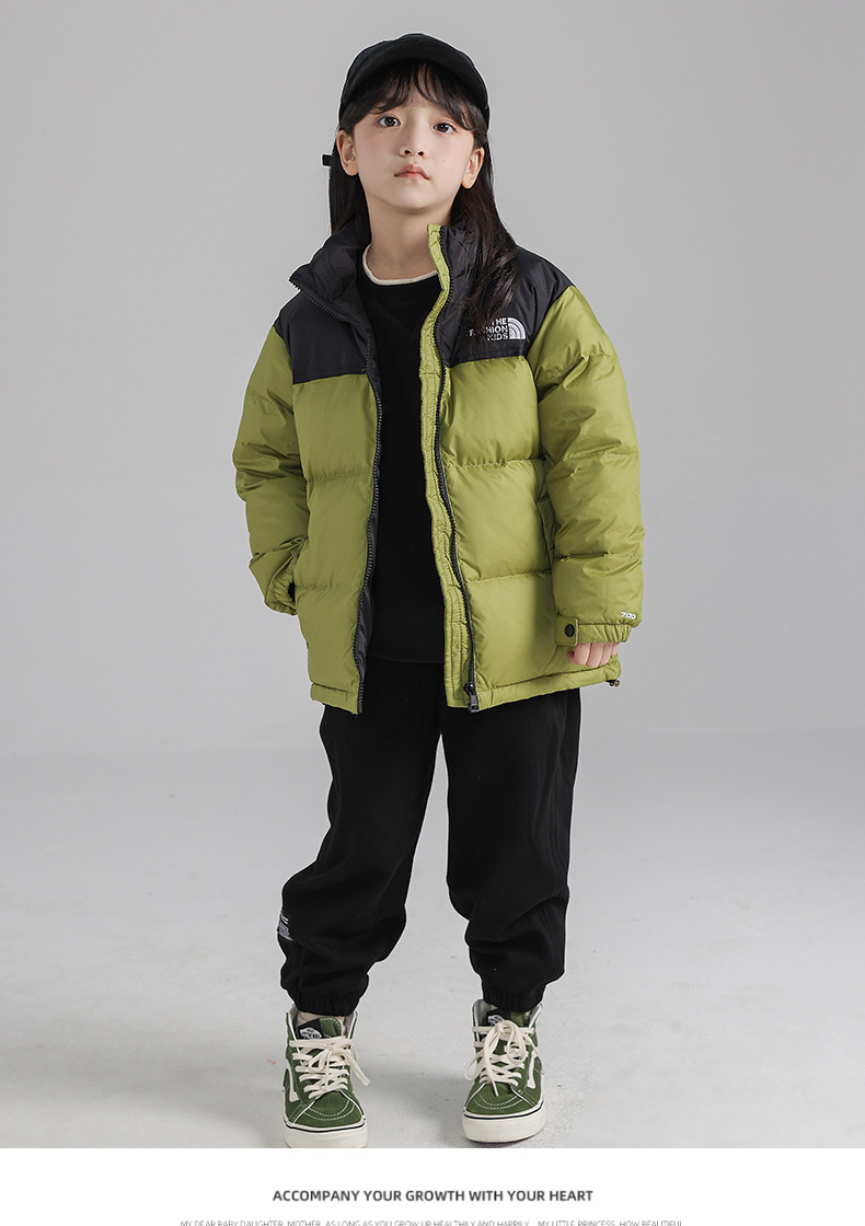 어린이용 다운 재킷 2025 신상 남아 여아 중대형 어린이용 배색 두꺼운 후드 짧은 스타일 흰색 오리털 겨울 코트스토어 가기