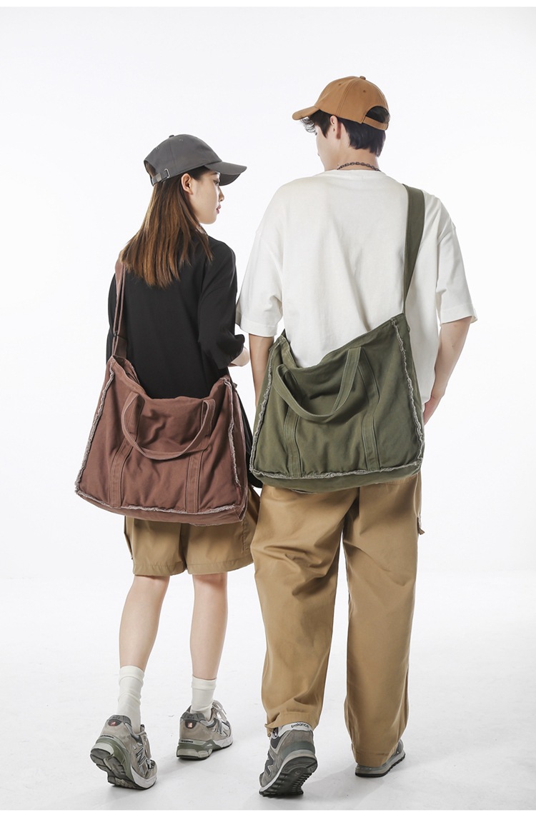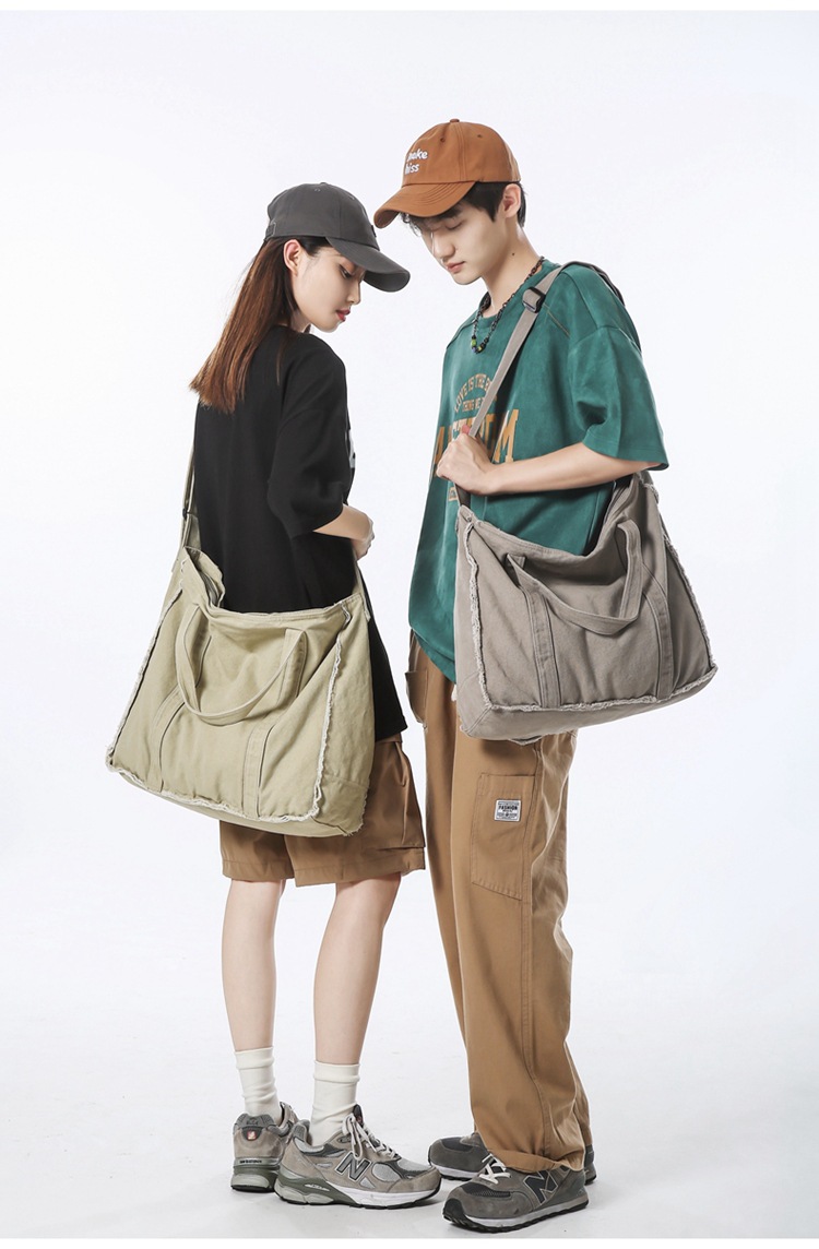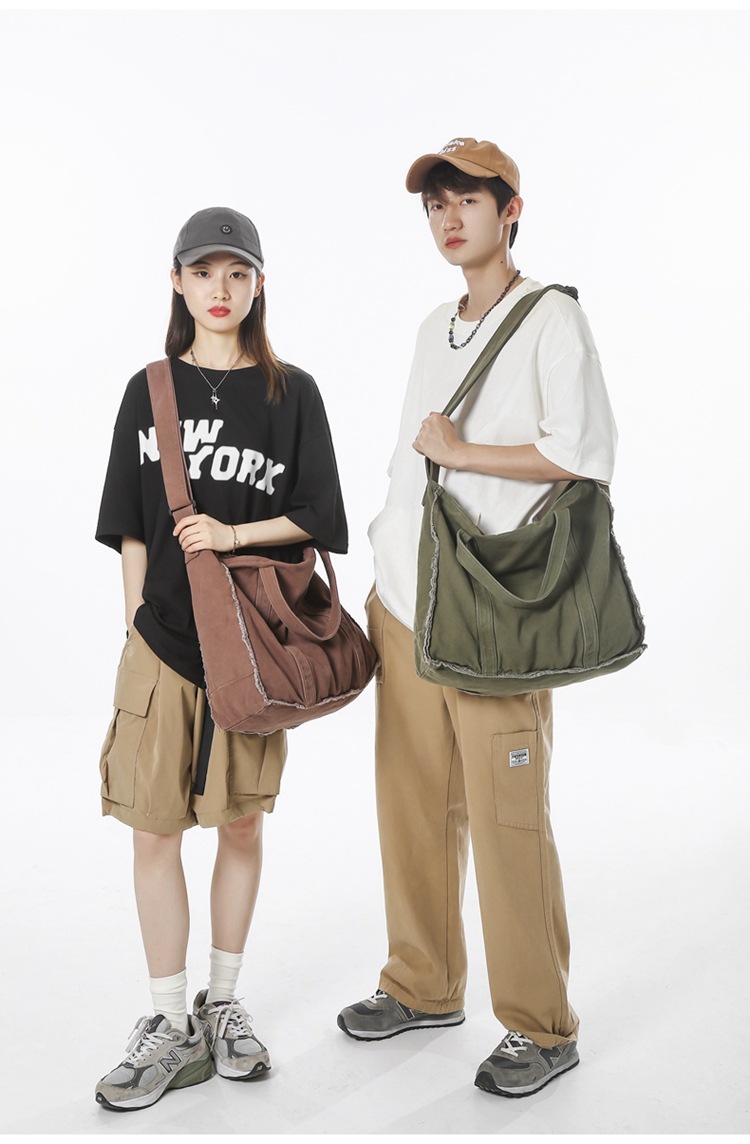 남성과 여성을위한 일본 숄더백 2024 새로운 맞춤형 로우 엣지 캔버스 가방 휴대용 크로스 바디 백 ins 학생 메신저 백