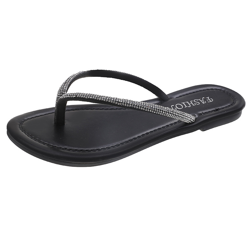 플립 플롭 여성용 여름 아웃웨어 끈 샌들 2023 봄 새로운 사이버 연예인 라인 석 플랫 비치 신발스토어 가기