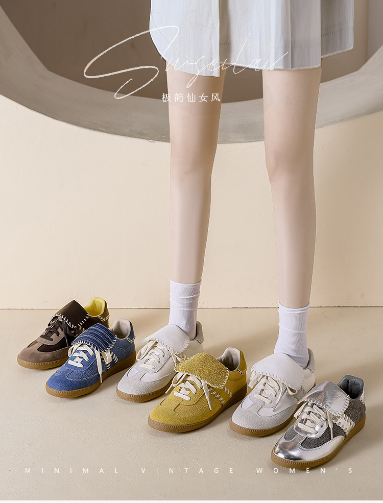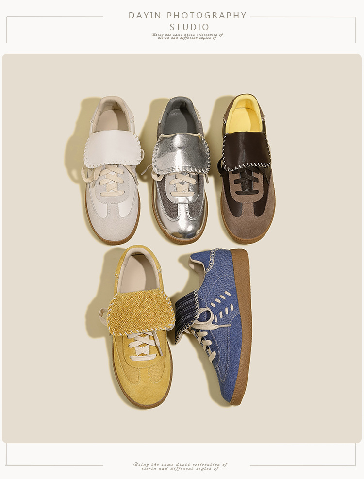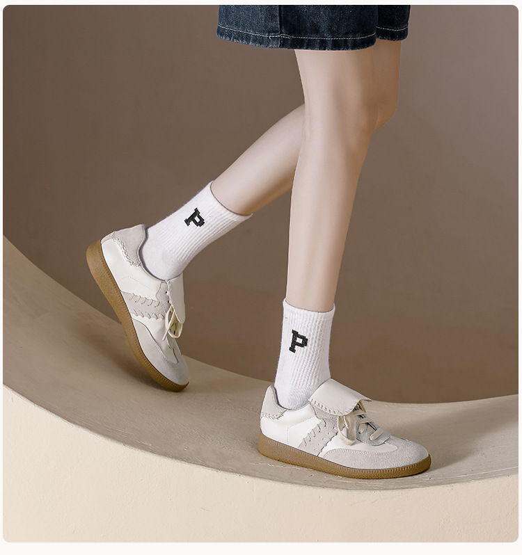 빈티지 정품 가죽 포레스트 검프 슈즈 여성용 레이스 업 2023 새로운 플랫 라운드 토 캐주얼 운동화 여성의 봄과 여름 독일 트레이닝 신발스토어 가기