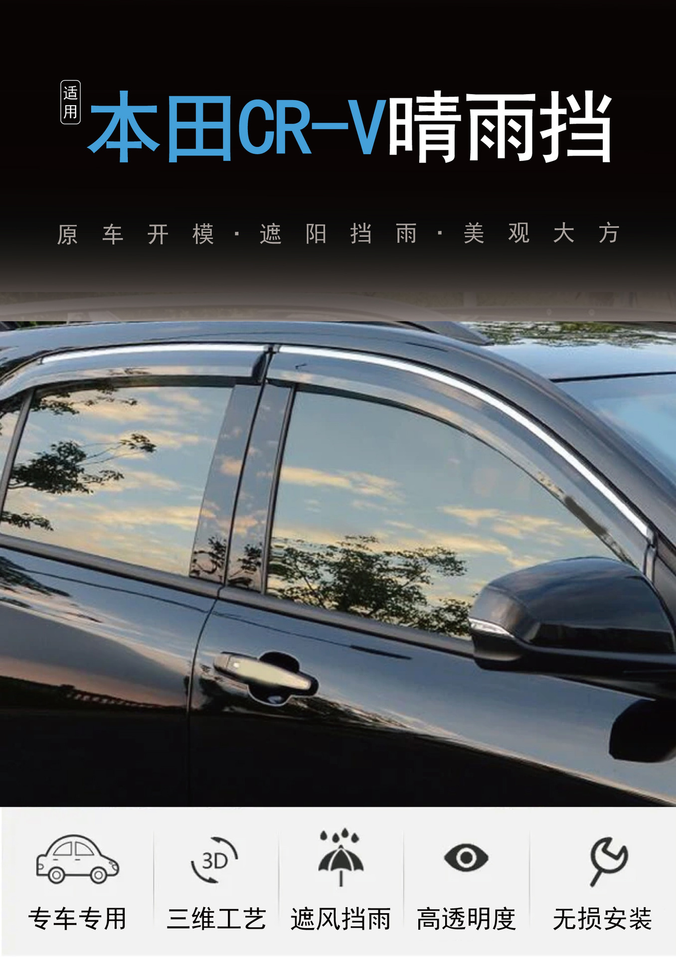 국경 간 적용 가능한 혼다 CRV 창 수정 차양 및 비 방패 4/6 검은 물집 접착 자동차 방패스토어 가기