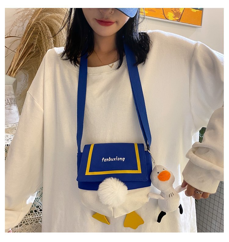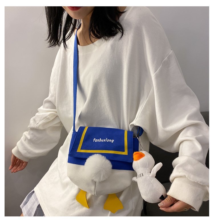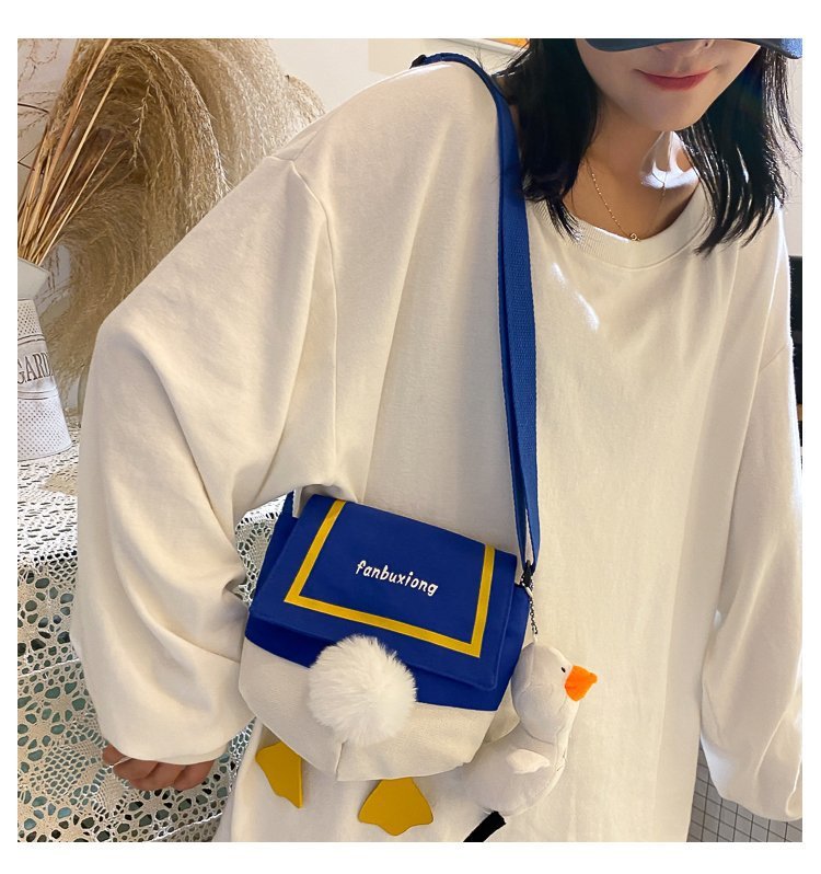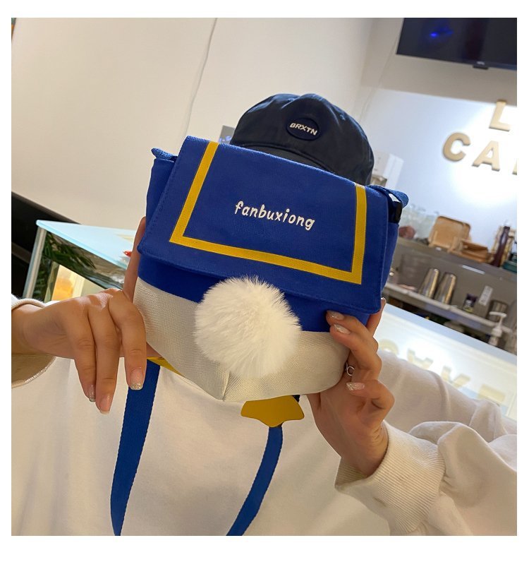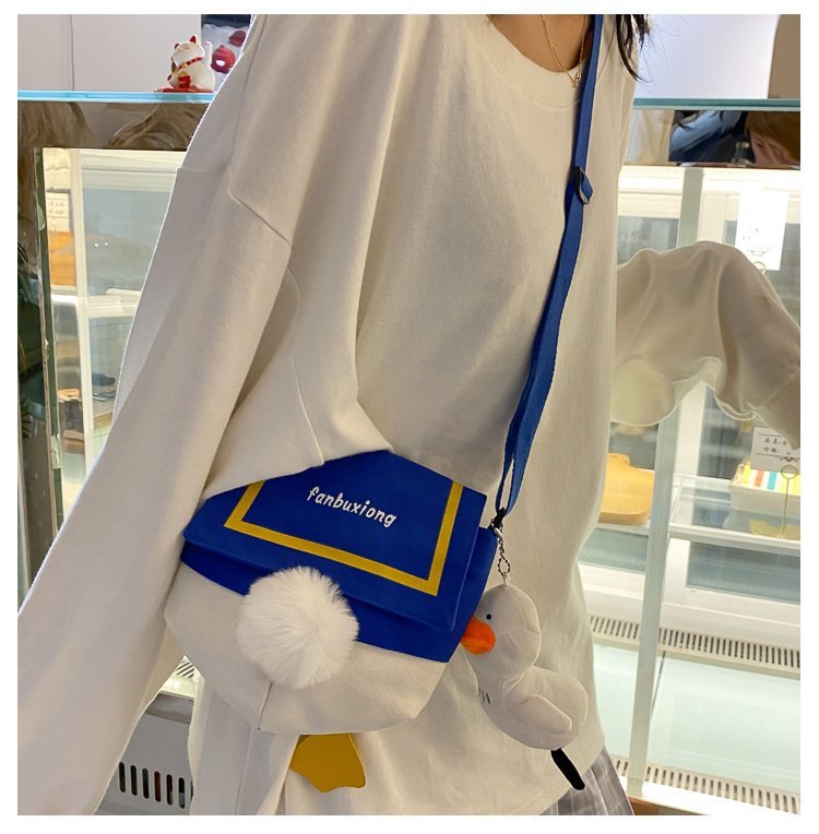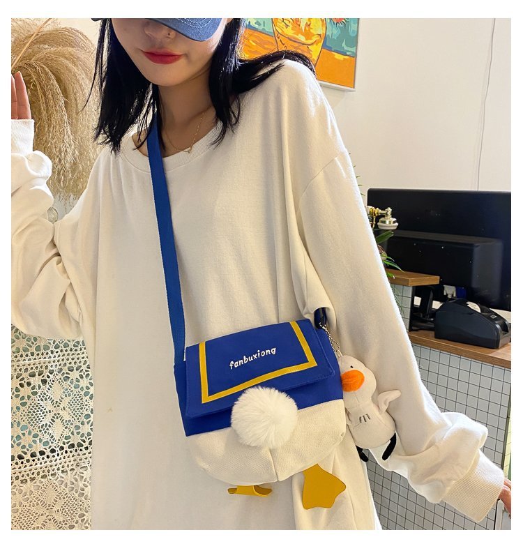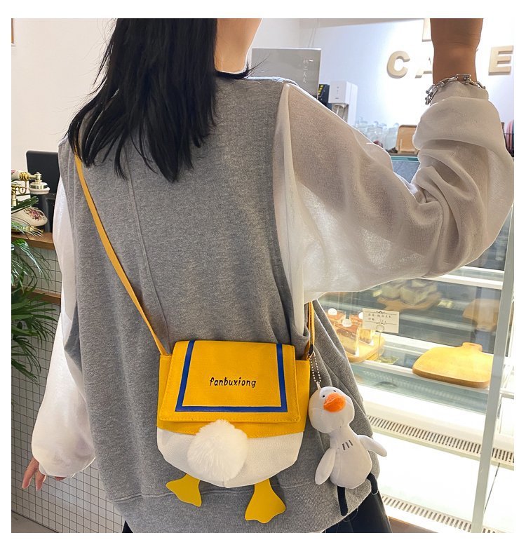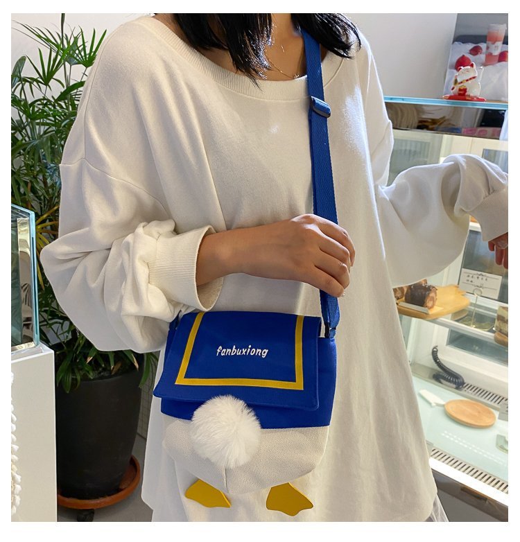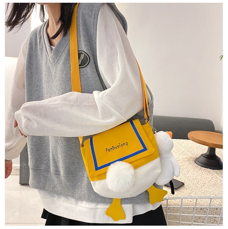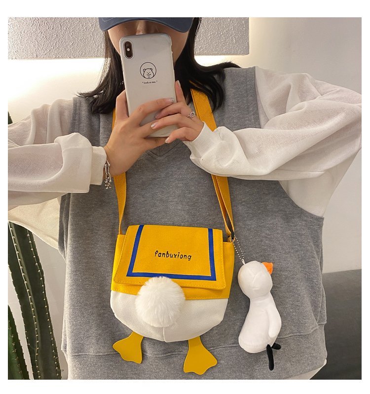 여성용 크로스 바디 백 새로운 귀여운 만화 오리 엉덩이 어깨 여성 가방 개인화 된 캔버스 가방 유행 휴대 전화 여성 가방스토어 가기