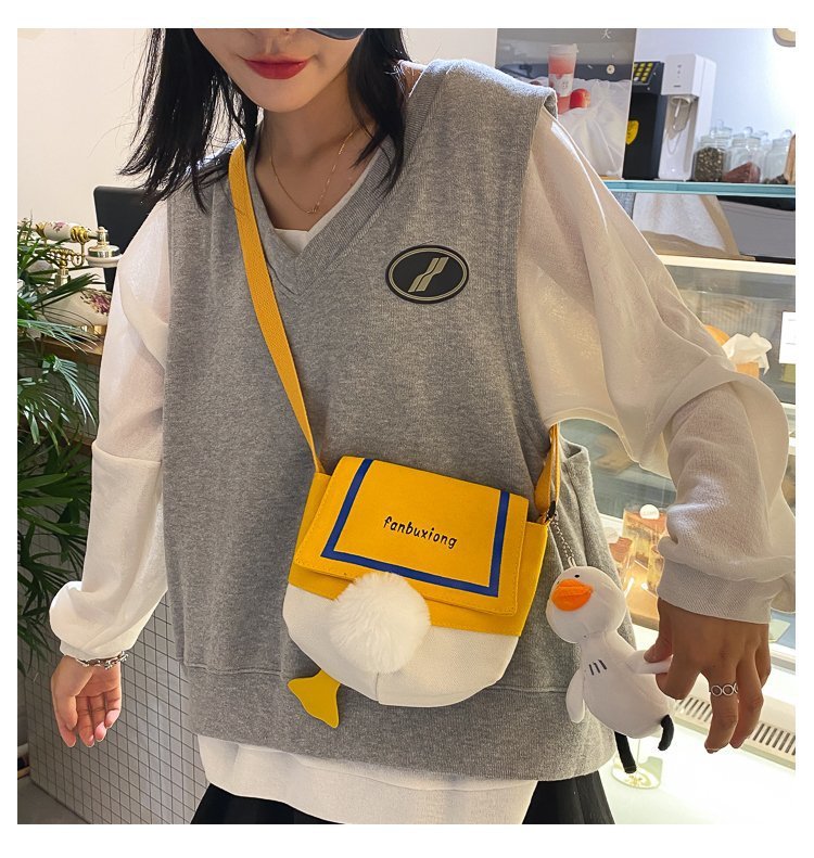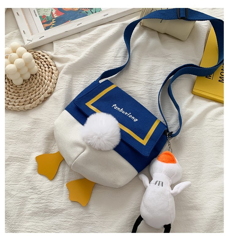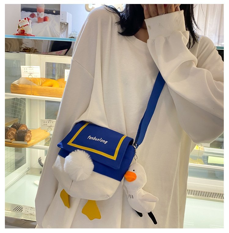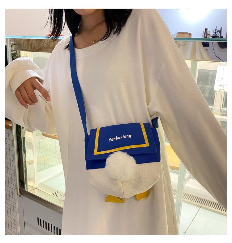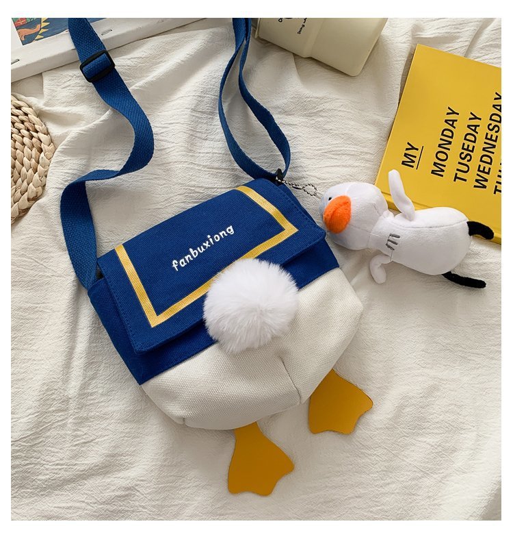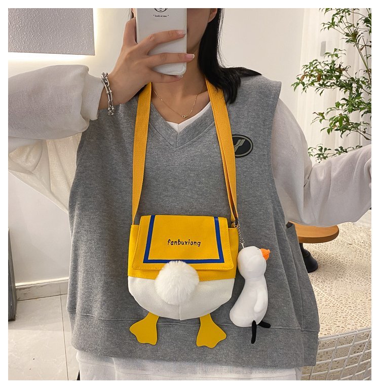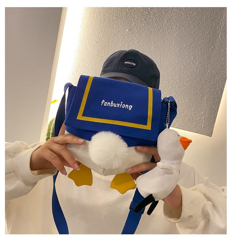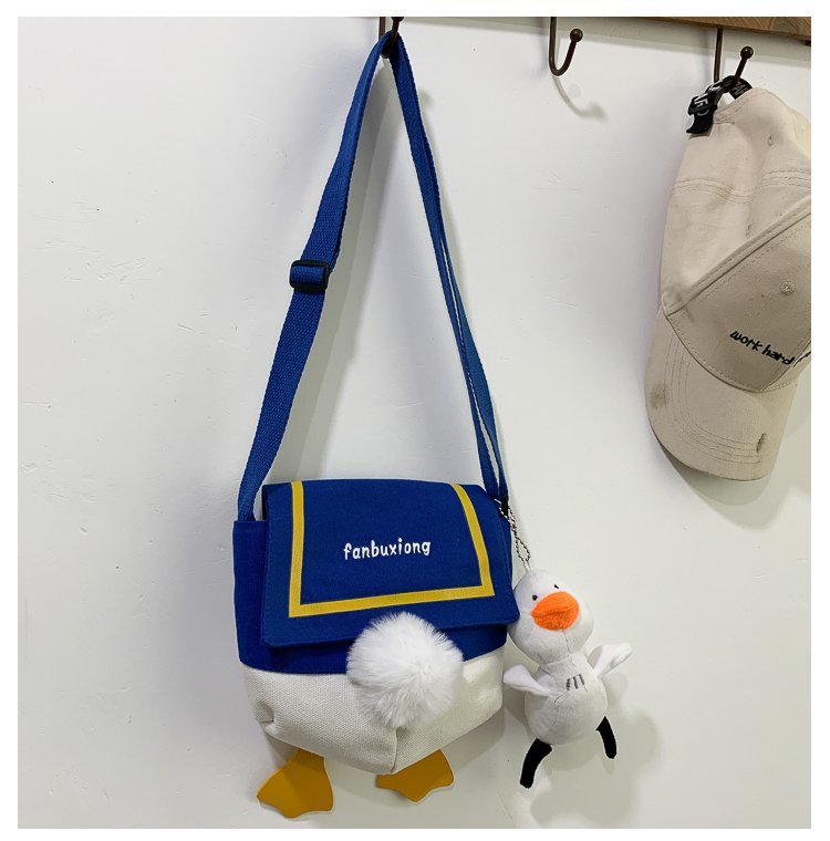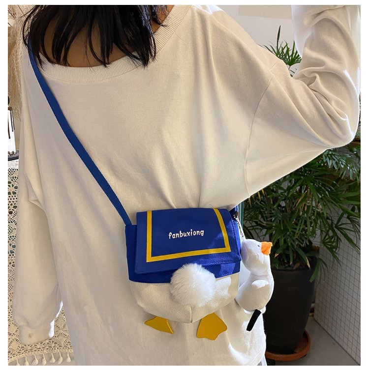 여성용 크로스 바디 백 새로운 귀여운 만화 오리 엉덩이 어깨 여성 가방 개인화 된 캔버스 가방 유행 휴대 전화 여성 가방스토어 가기