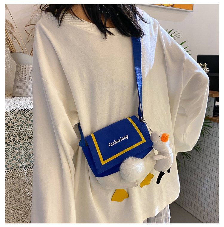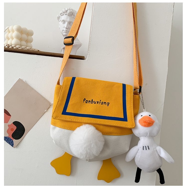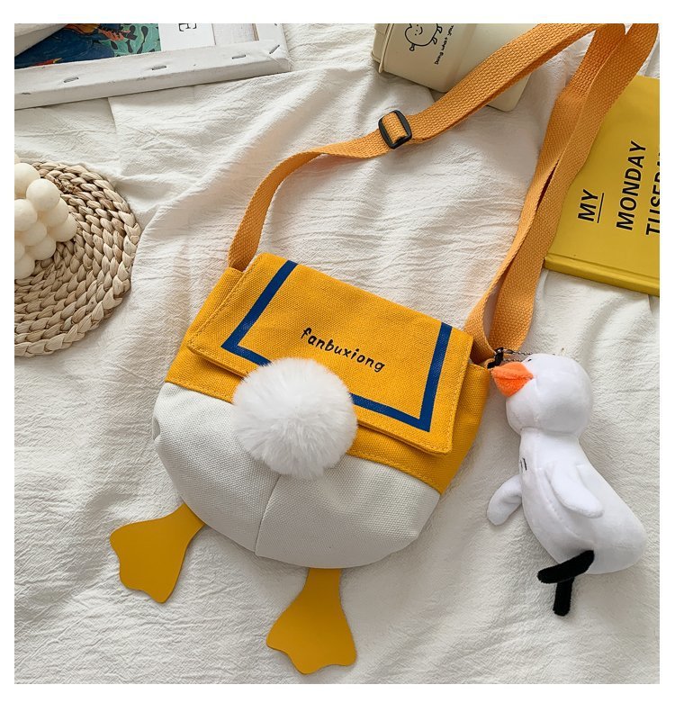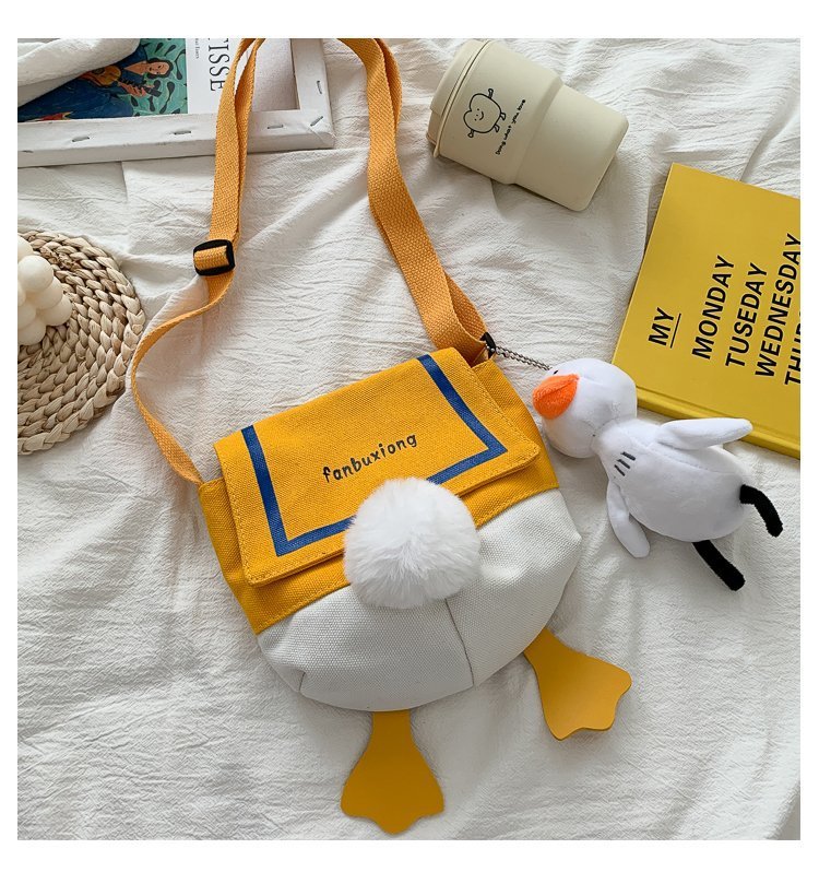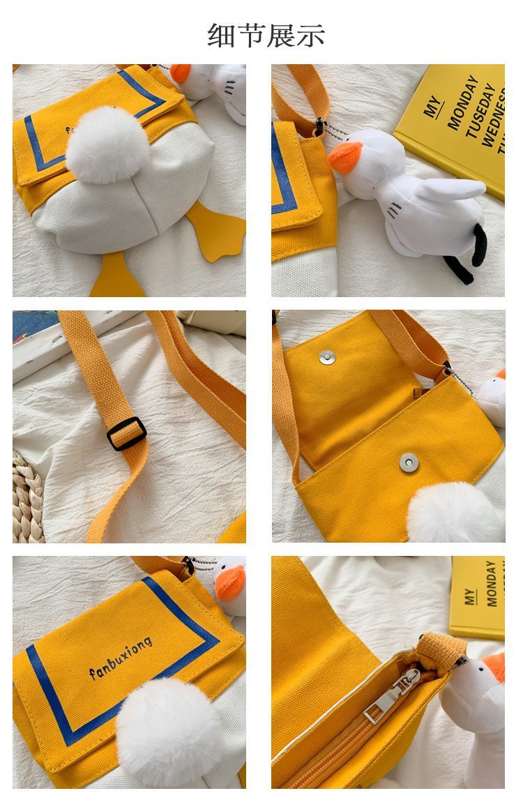 여성용 크로스 바디 백 새로운 귀여운 만화 오리 엉덩이 어깨 여성 가방 개인화 된 캔버스 가방 유행 휴대 전화 여성 가방