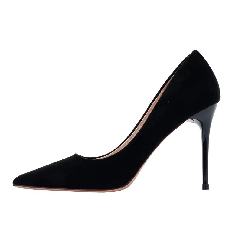 양가죽 버전 ~ 통근 여성스러운 얕은 입 직업적인 뾰족한 섹시한 스틸레토 슈즈 다용도 블랙 스웨이드 하이힐스토어 가기
