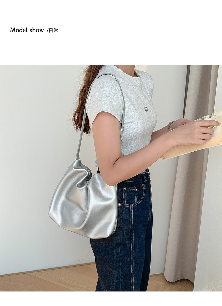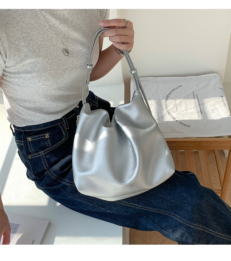 새로운 한국 스타일 다용도 토트 백 통근 고급 대용량 숄더백 여성 패션 심플 플리츠 백스토어 가기