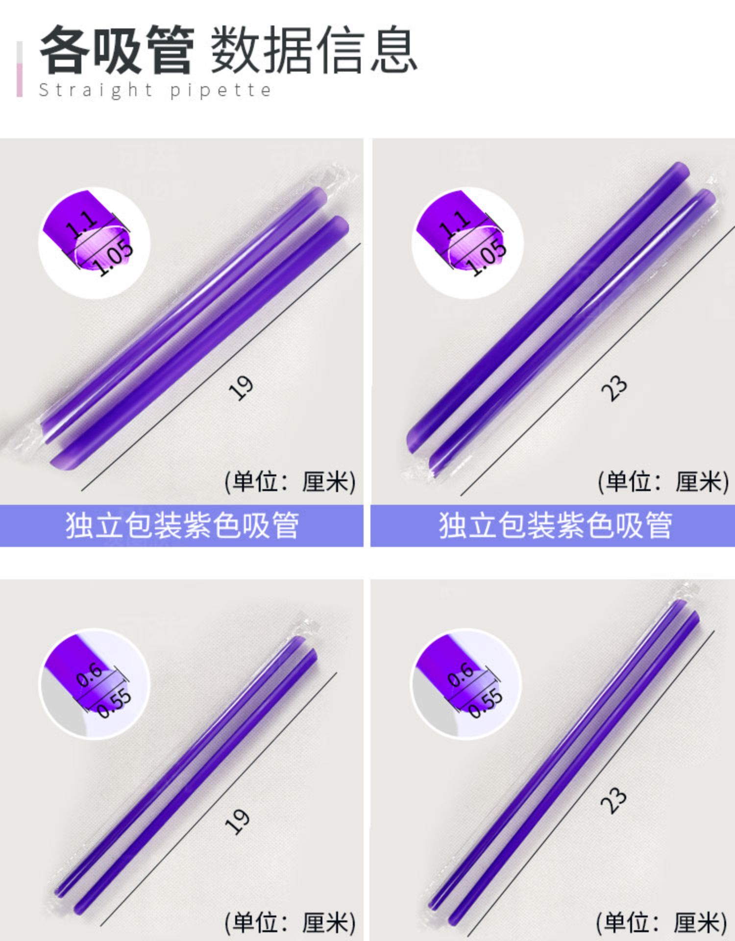 도매 보라색 짚 일회용 거친 별도 포장 1000 Pcts 상업용 고급 긴 플라스틱 투명 진주 우유 차
