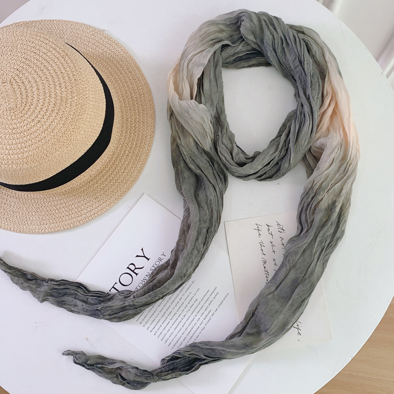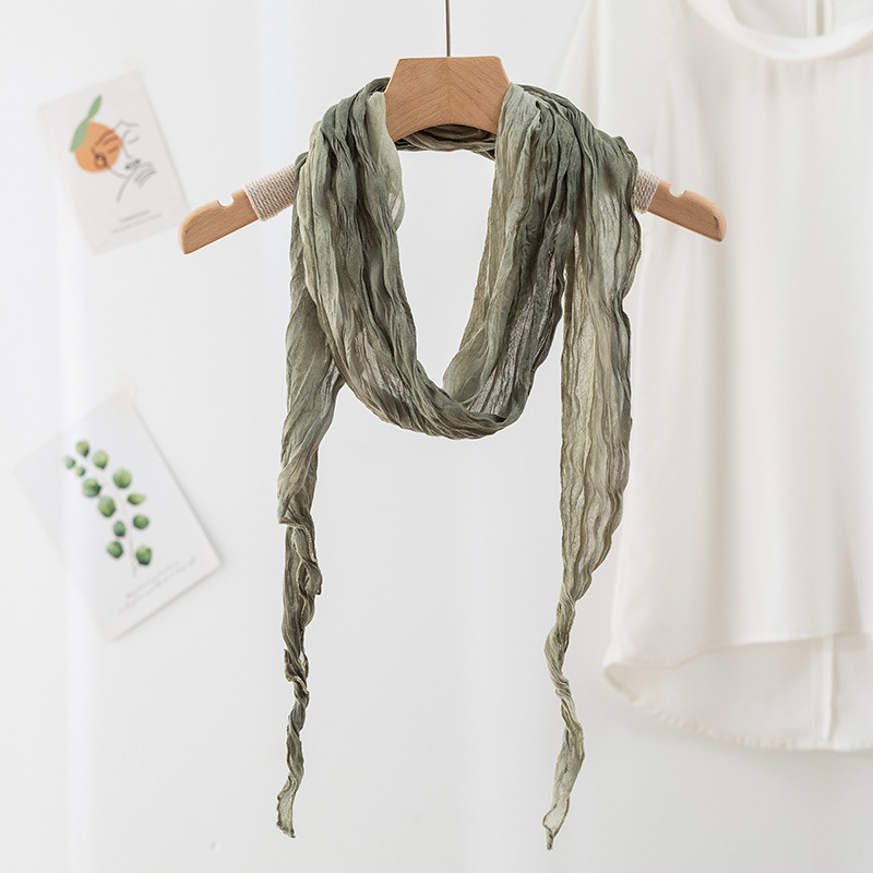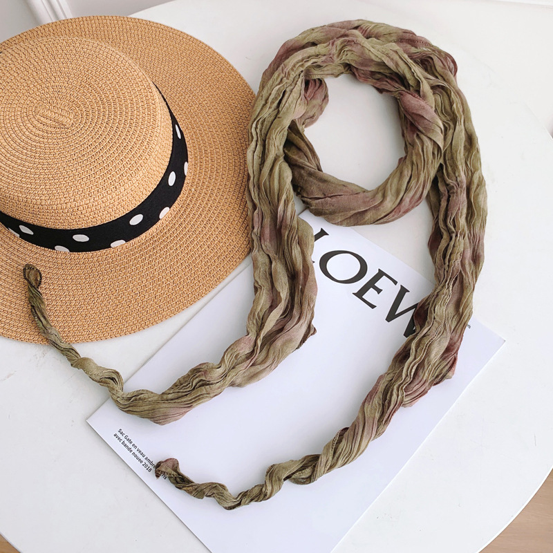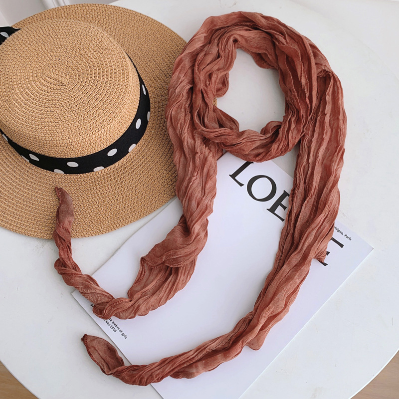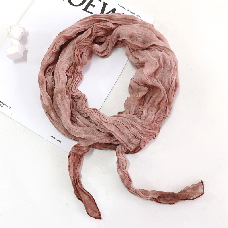 일본식 면과 린넨 스카프 여성용 넥타이 염색 단색 봄과 가을 얇은 좁은 긴 얇은 주름 실크 스카프 모든 일치 유행 스카프스토어 가기