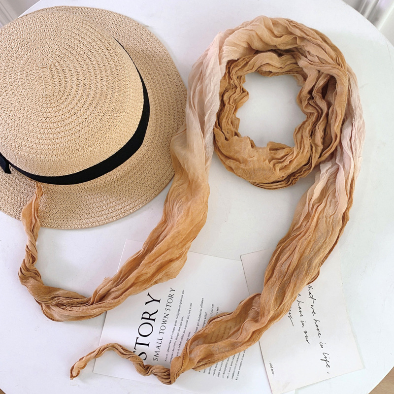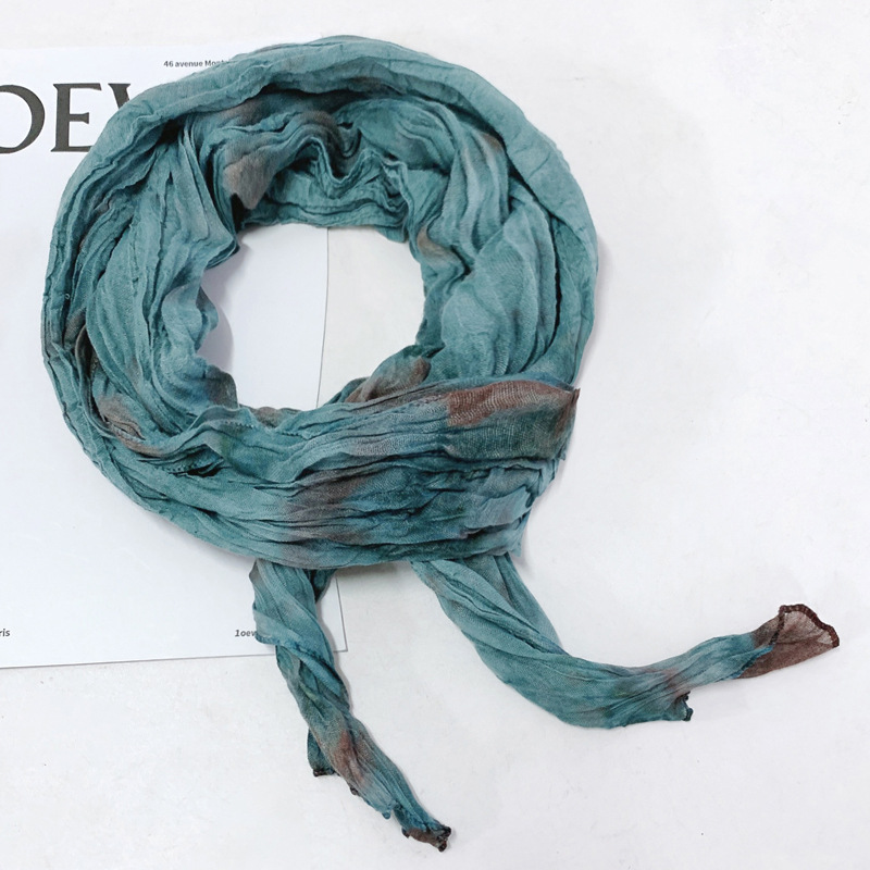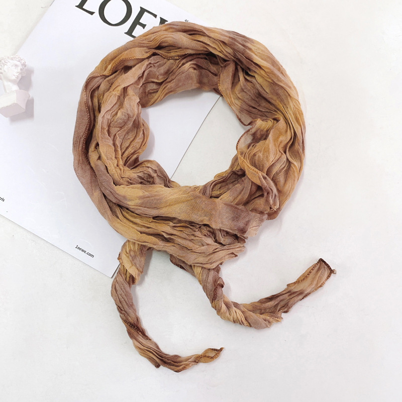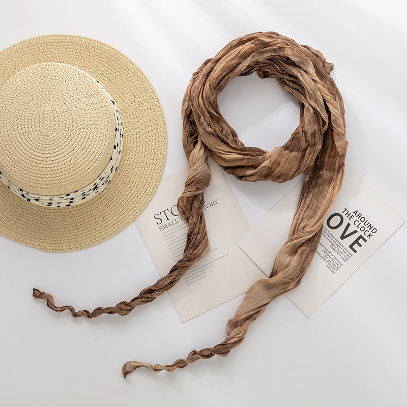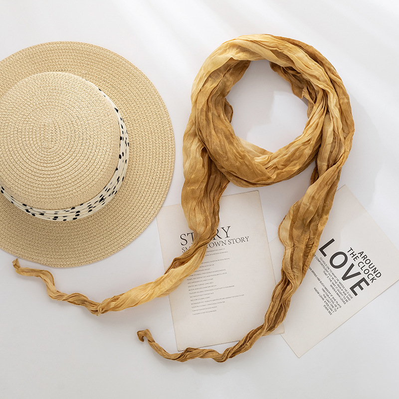 일본식 면과 린넨 스카프 여성용 넥타이 염색 단색 봄과 가을 얇은 좁은 긴 얇은 주름 실크 스카프 모든 일치 유행 스카프스토어 가기