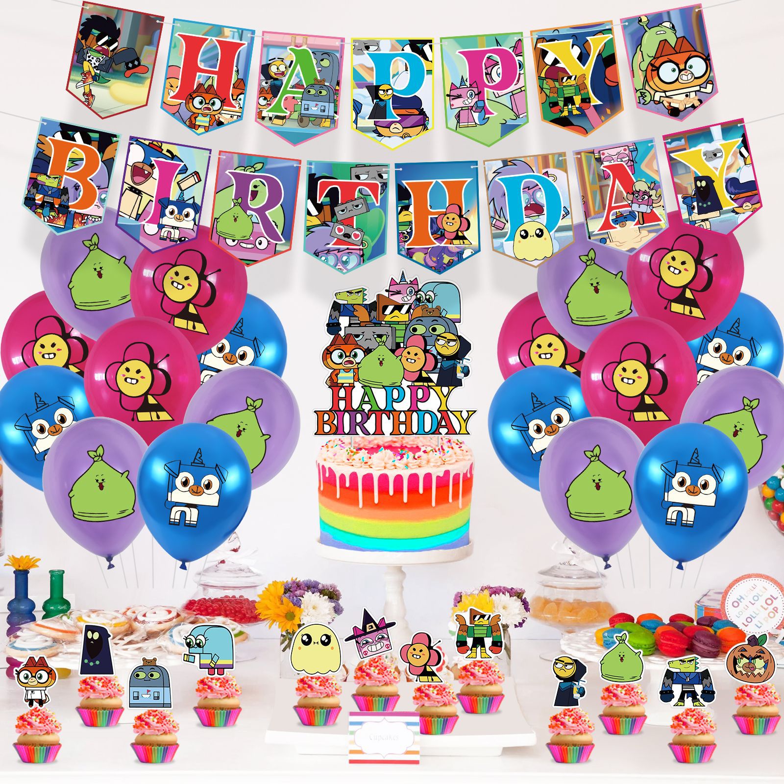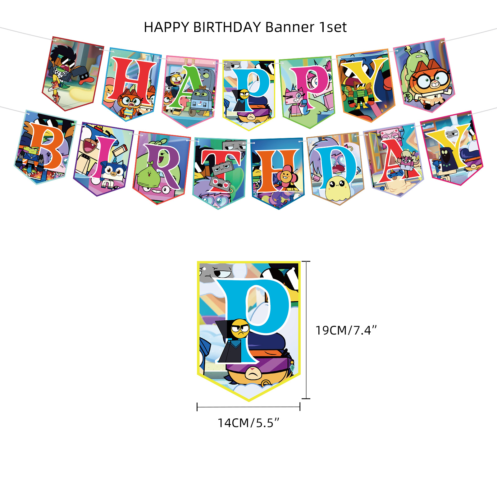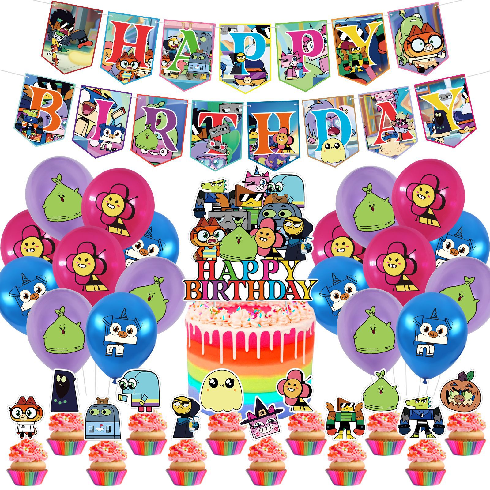 새로운 한 뿔 고양이 테마 생일 파티 장식 생일 플래그 케이크 카드 풍선 파티 세트